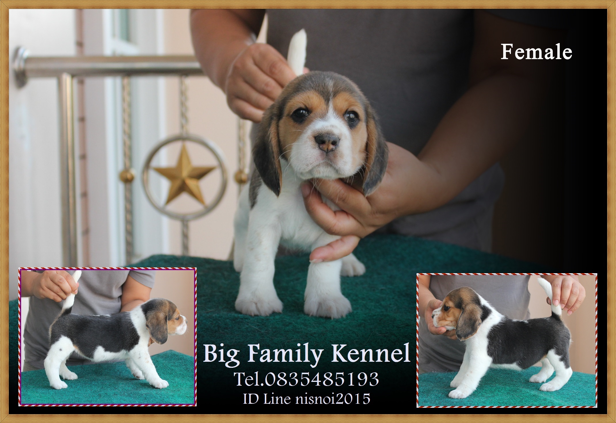ขายบีเกิ้ลสามสี เพศผู้ 4 ตัว เพศเมีย 3 ตัว สายพันธุ์แชมป์