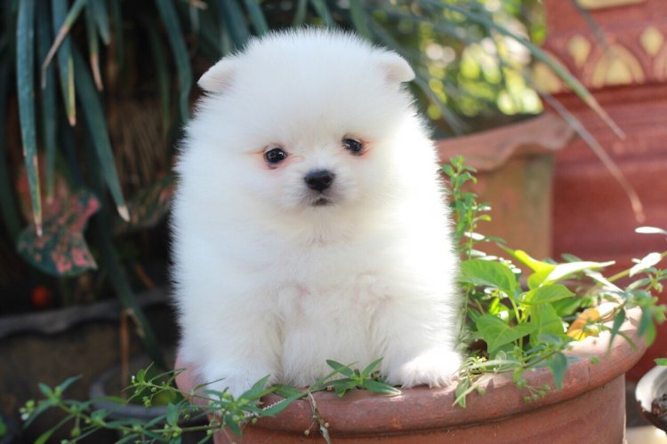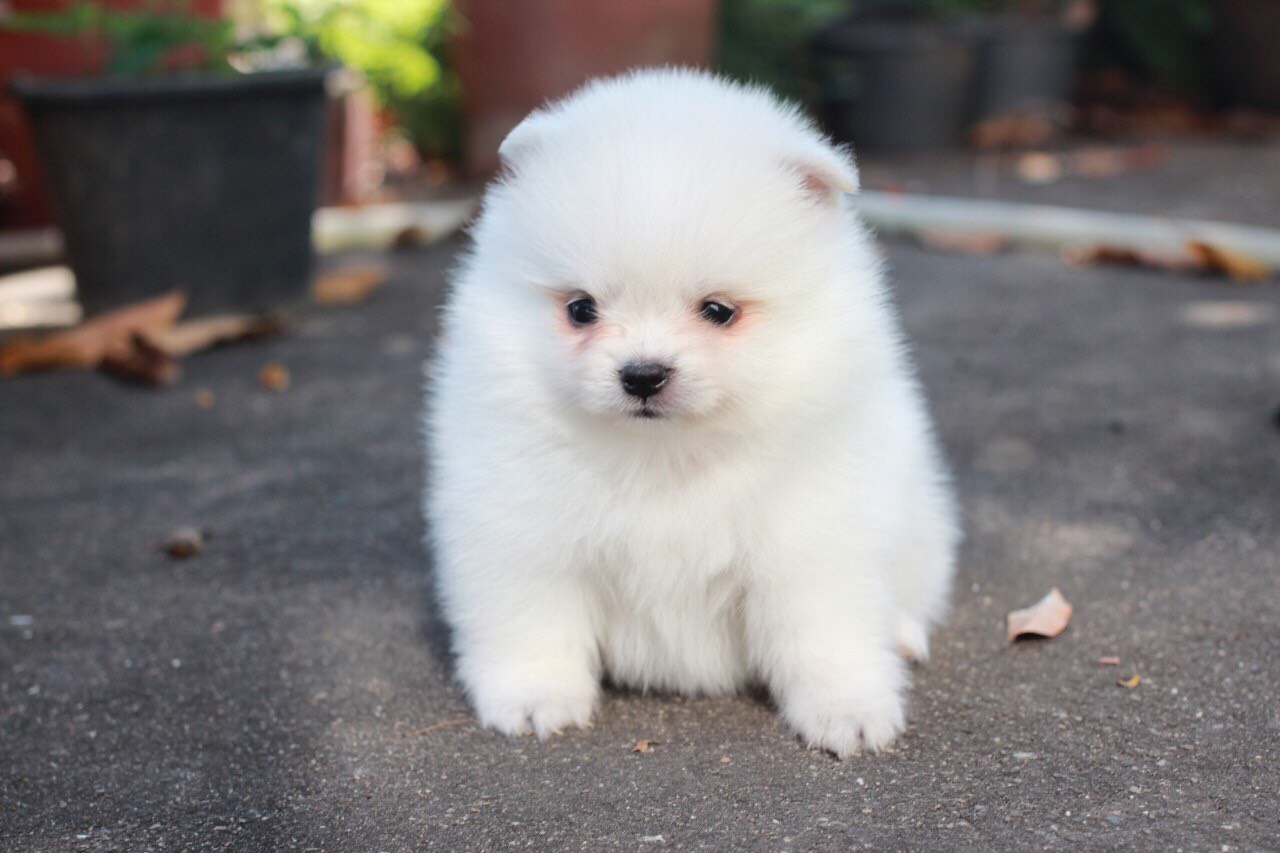 ปอมเมอเรเนี่ยนสีขาวสำลี เพศเมียน่ารัก