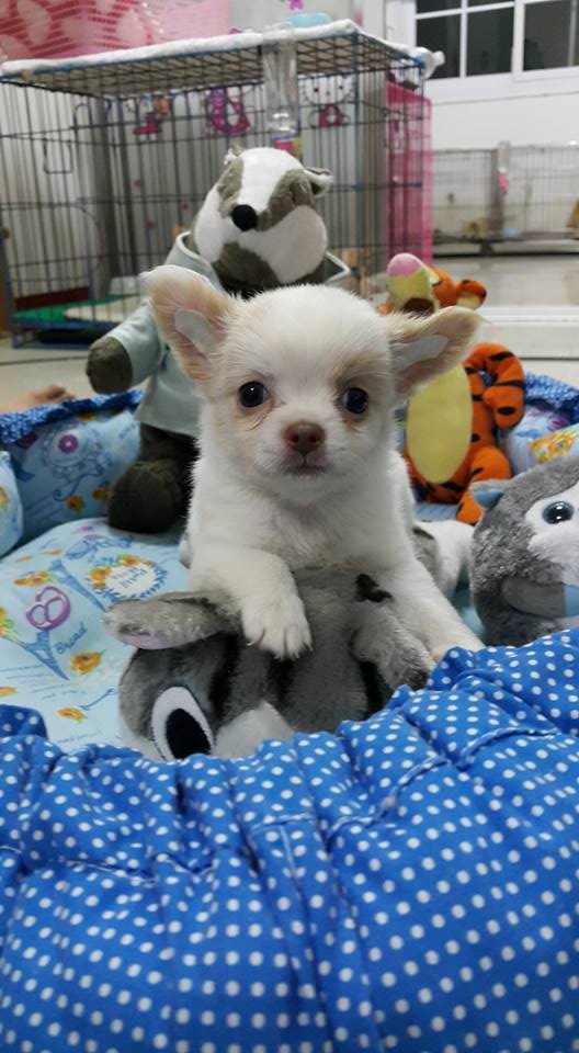 ชิวาวาขนยาว เพศเมีย น่าหัวขาวครีม หลังขาวล้วน สายเลือดดีพ่อไทยแชมป์ พร้อมใบเพ็ด วัคซีน ถ่ายพยาธิ ประกันสุขภาพ 15 วัน กรุงเทพส่งฟรีหรือมารับน้องเองได้ สนใจ 0904025550 ID mon0904025550 ราคา 6000 ครับ