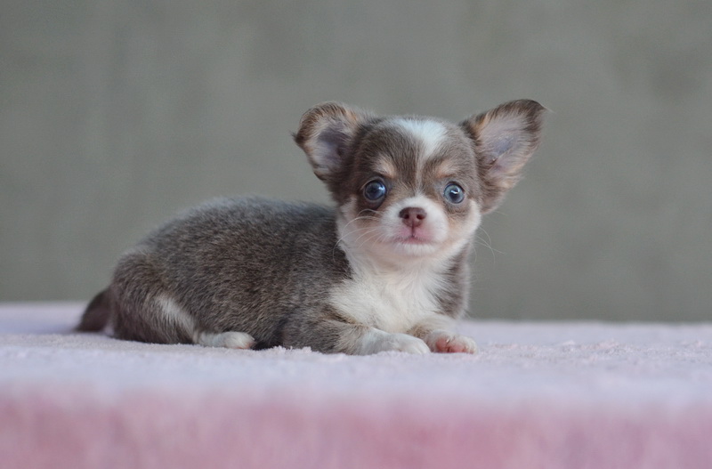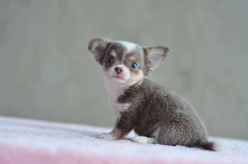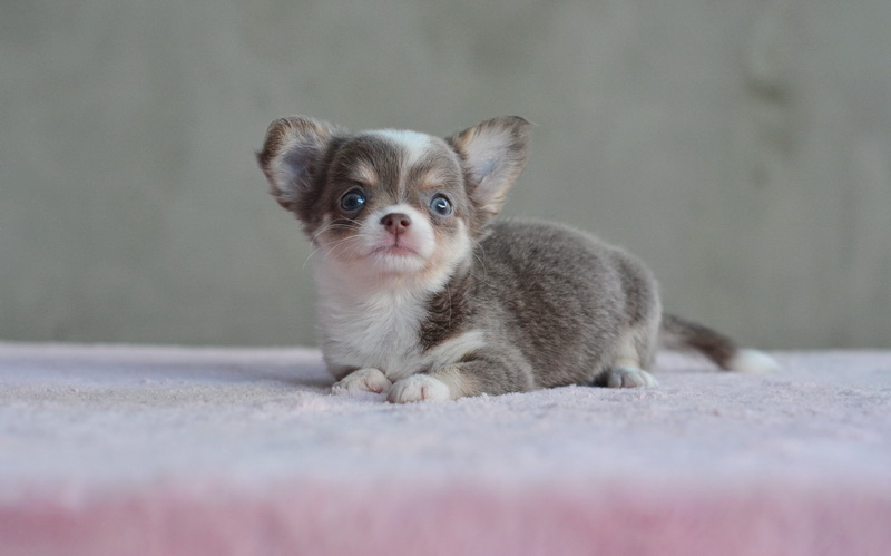 ★^-^*★ WWW.WOWWCHIHUAHUA.COM★^-^*★.. "น้องซิลวี่" เพศเมียขนยาวสีเทาแทนมีคิ้ว มาร์กสวยถุงเท้าขาว