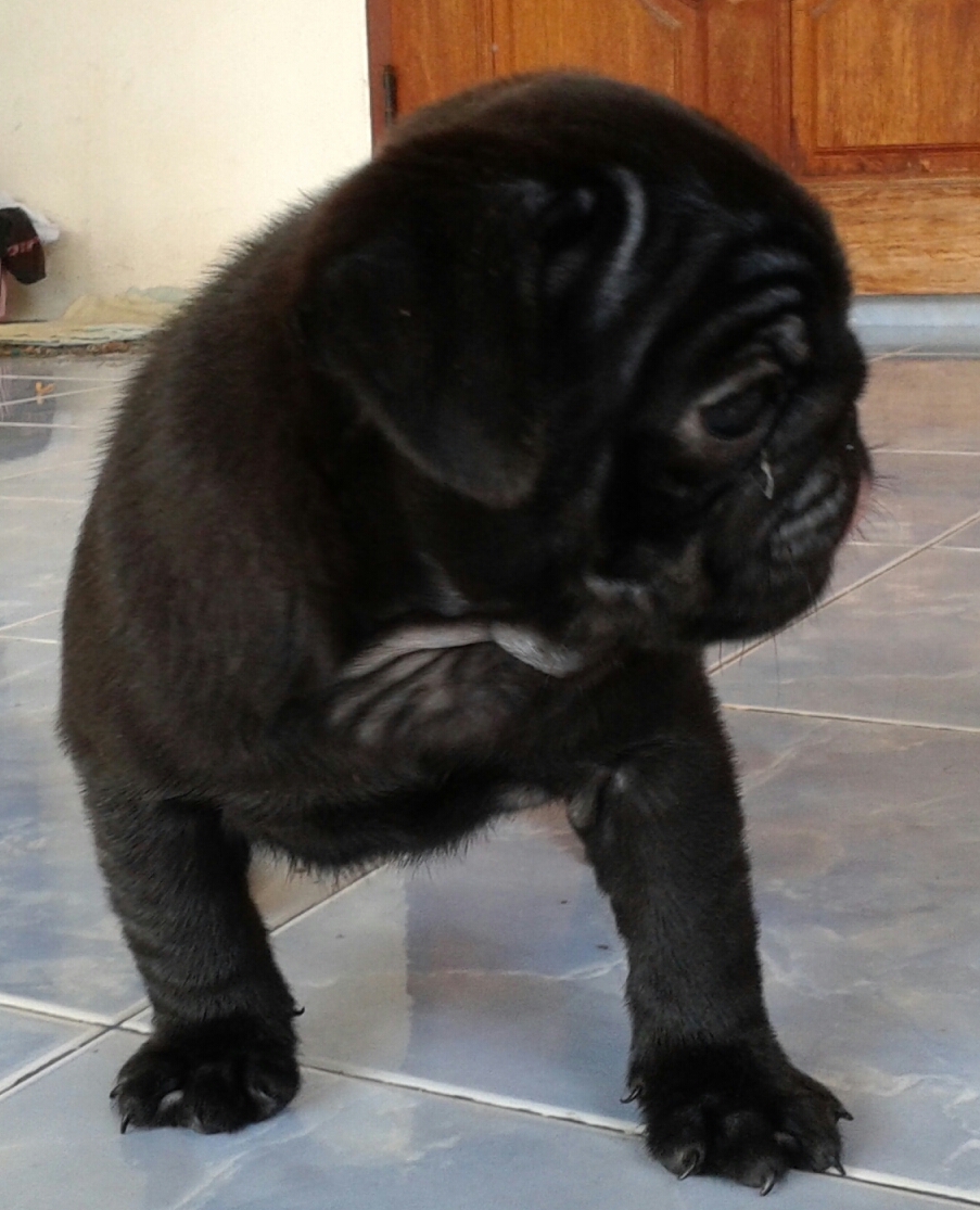 ลูกปั๊กดำเพศผู้สายเลือดไทยแชมป์ มีตัวเดียวเท่านั้น ดำทั้งตัวครับ (พ่อและแม่เป็นลูกไทยแลนด์แชมป์ พ่อส