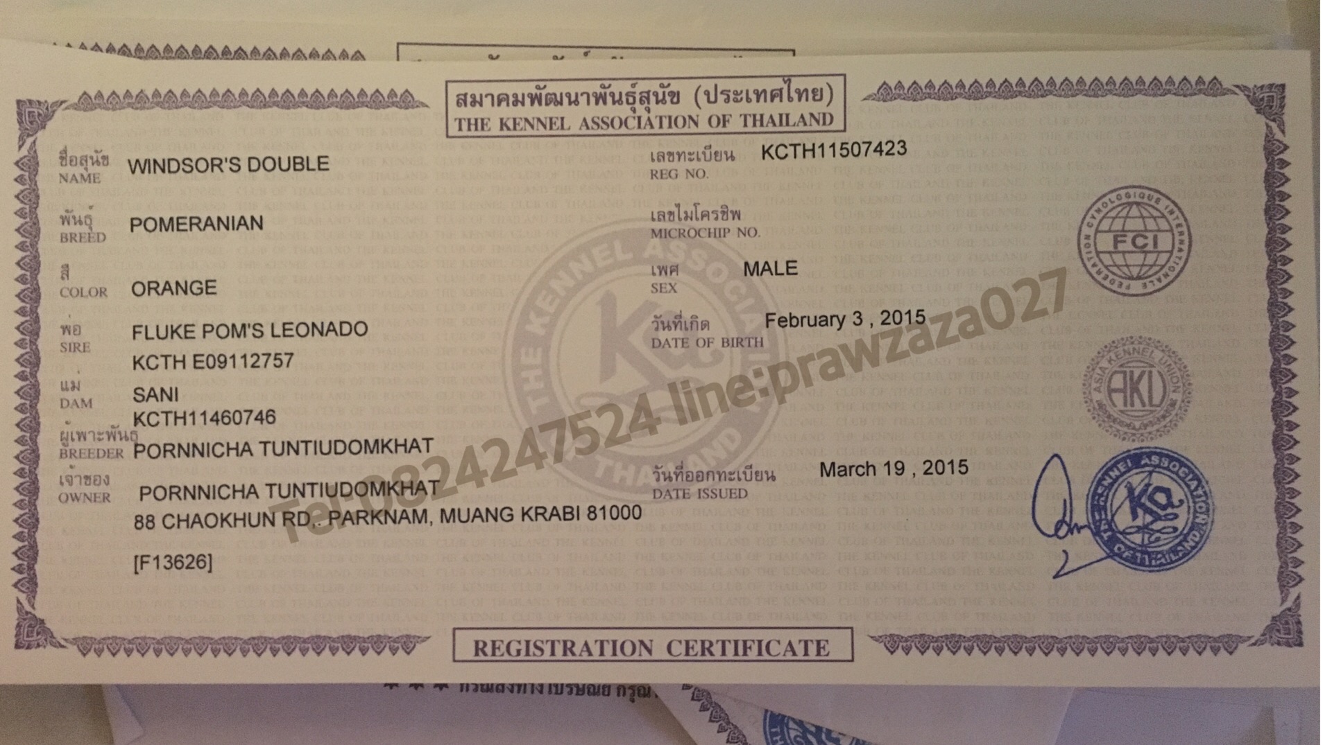 -มีใบเพ็ตดีกรีจากสมาคมพัฒนาพันธุ์สุนัข(kcth)