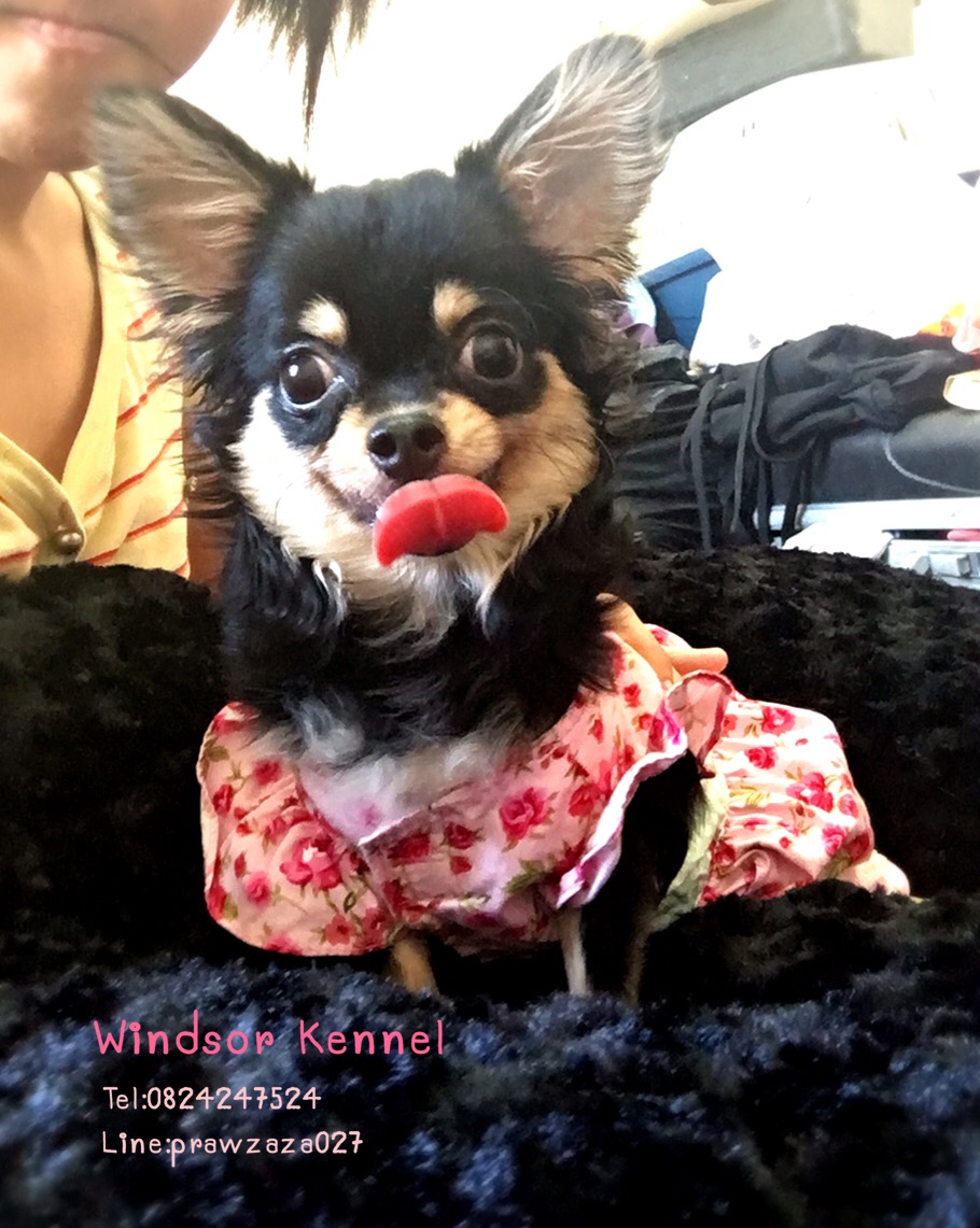 ขายชิวาว่าขนยาว เพศเมีย สีแบล็คแทน ไซต์เล็ก ราคาถูกๆ 14500 บาทต่อรองได้ค่ะ
