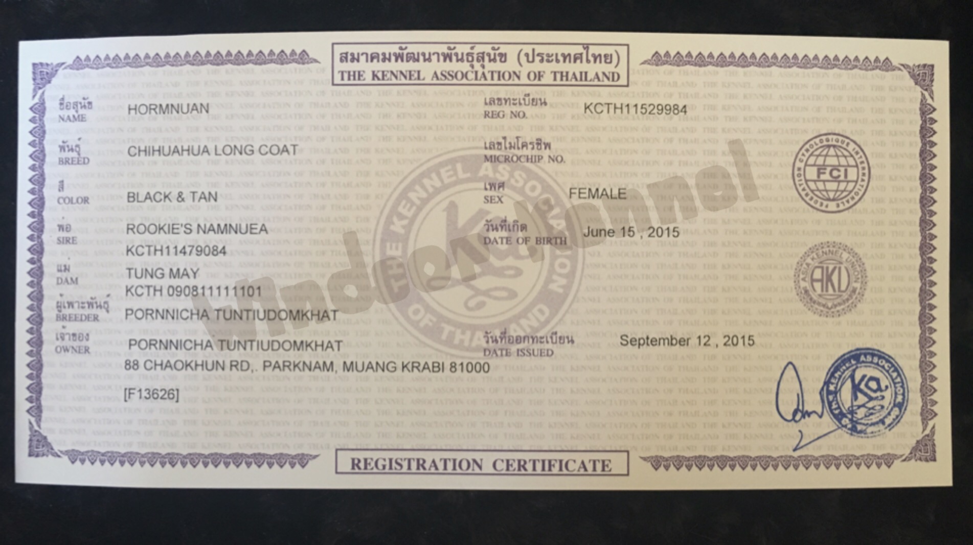-มีใบเพ็ตดีกรีสมาคมพัฒนาพันธุ์สุนัข(kcth)