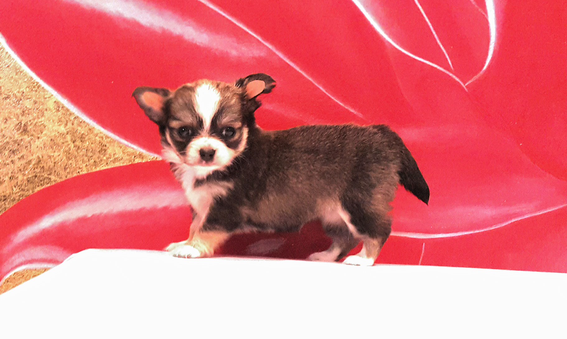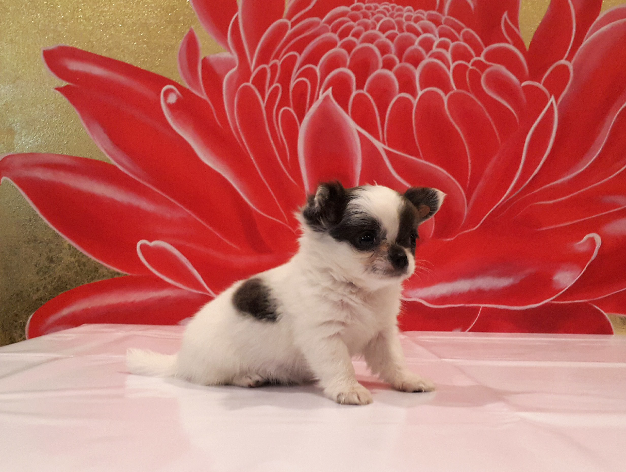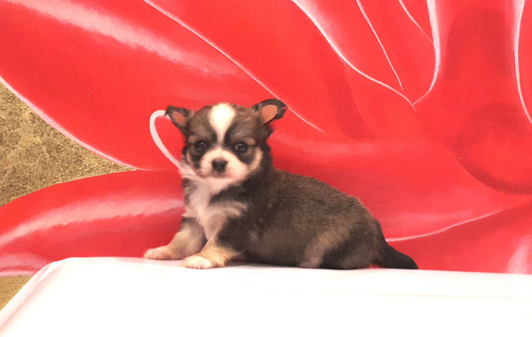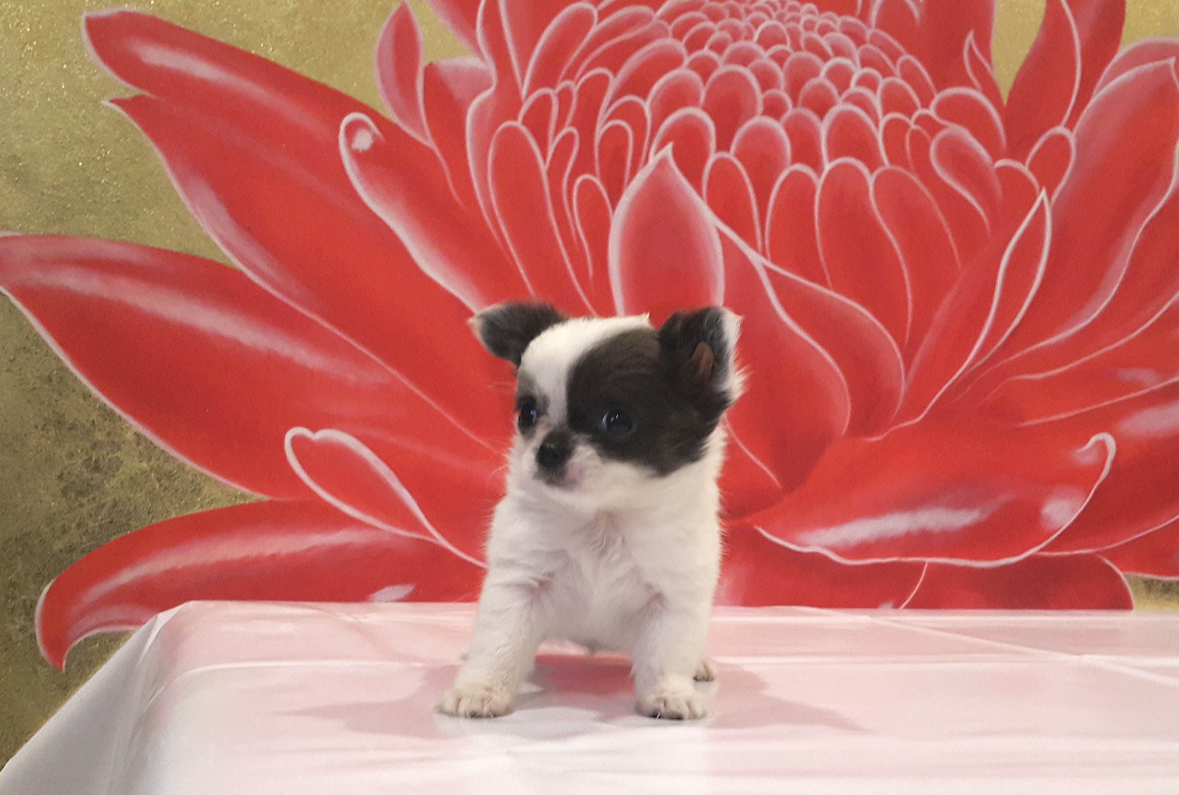 ชิวาวาขนยาว เพศเมีย ขนาดเล็ก หน้าสั้นงุด อายุ 45 วัน