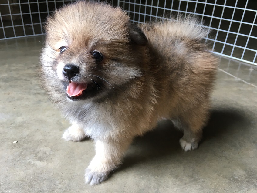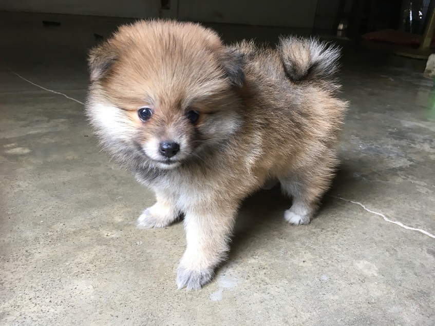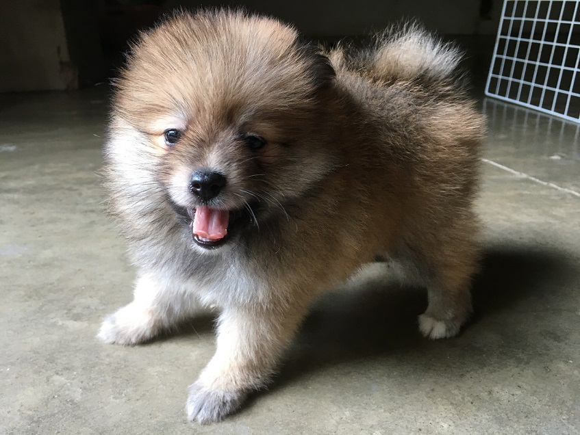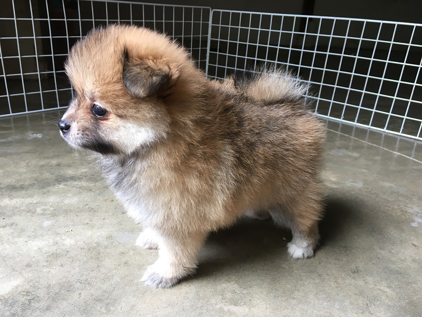 ปอมแท้ เพศเมีย สีน้ำตาลแฟนซี ขนหนาแน่นฟู ตัวสั้น ทรงสวย อายุ 2 เดือน 10 วัน พร้อมย้ายบ้าน