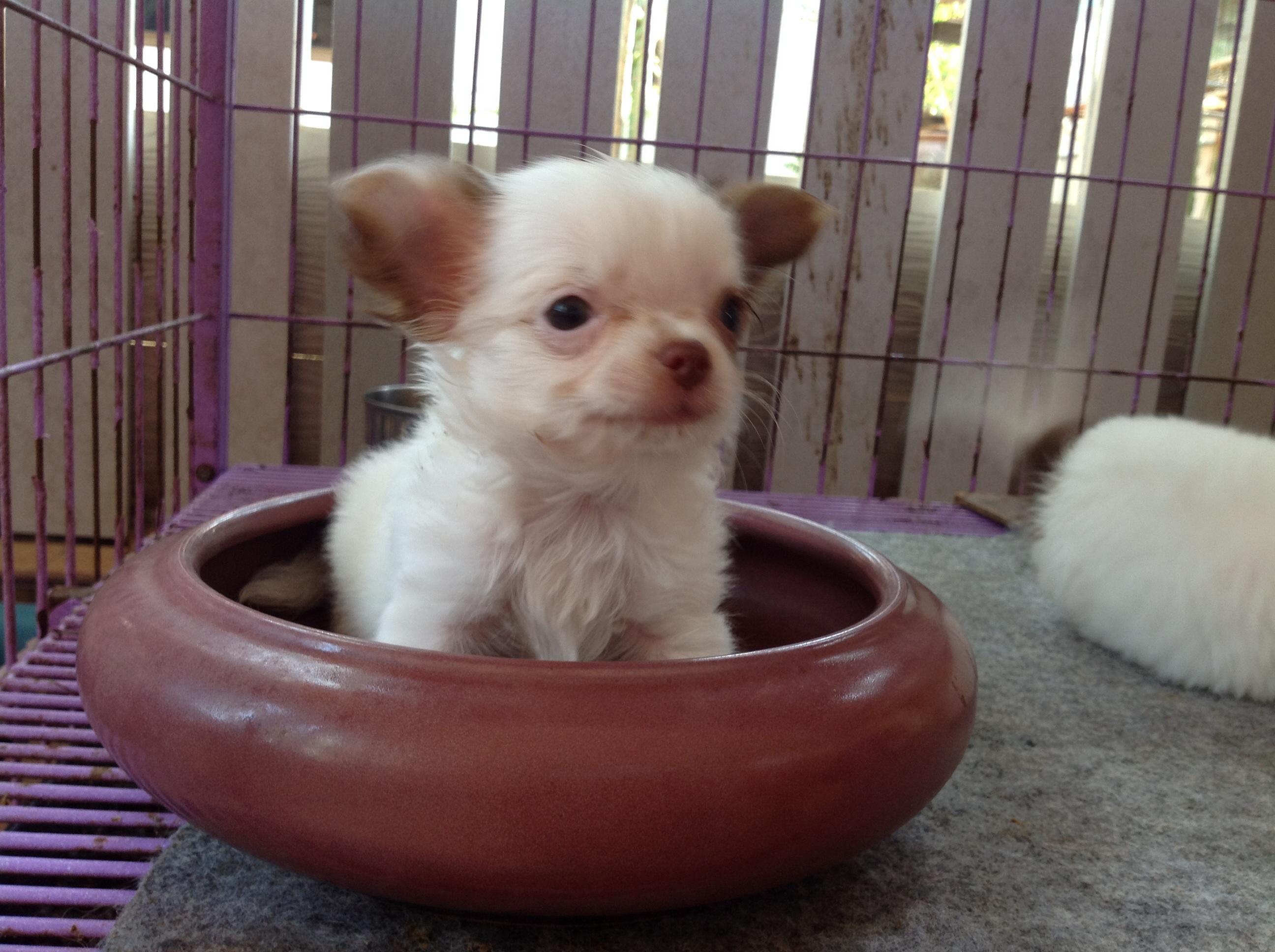 ชิวาวาขนยาว สีขาวน้ำตาล ราคาเบาๆต่รองได้