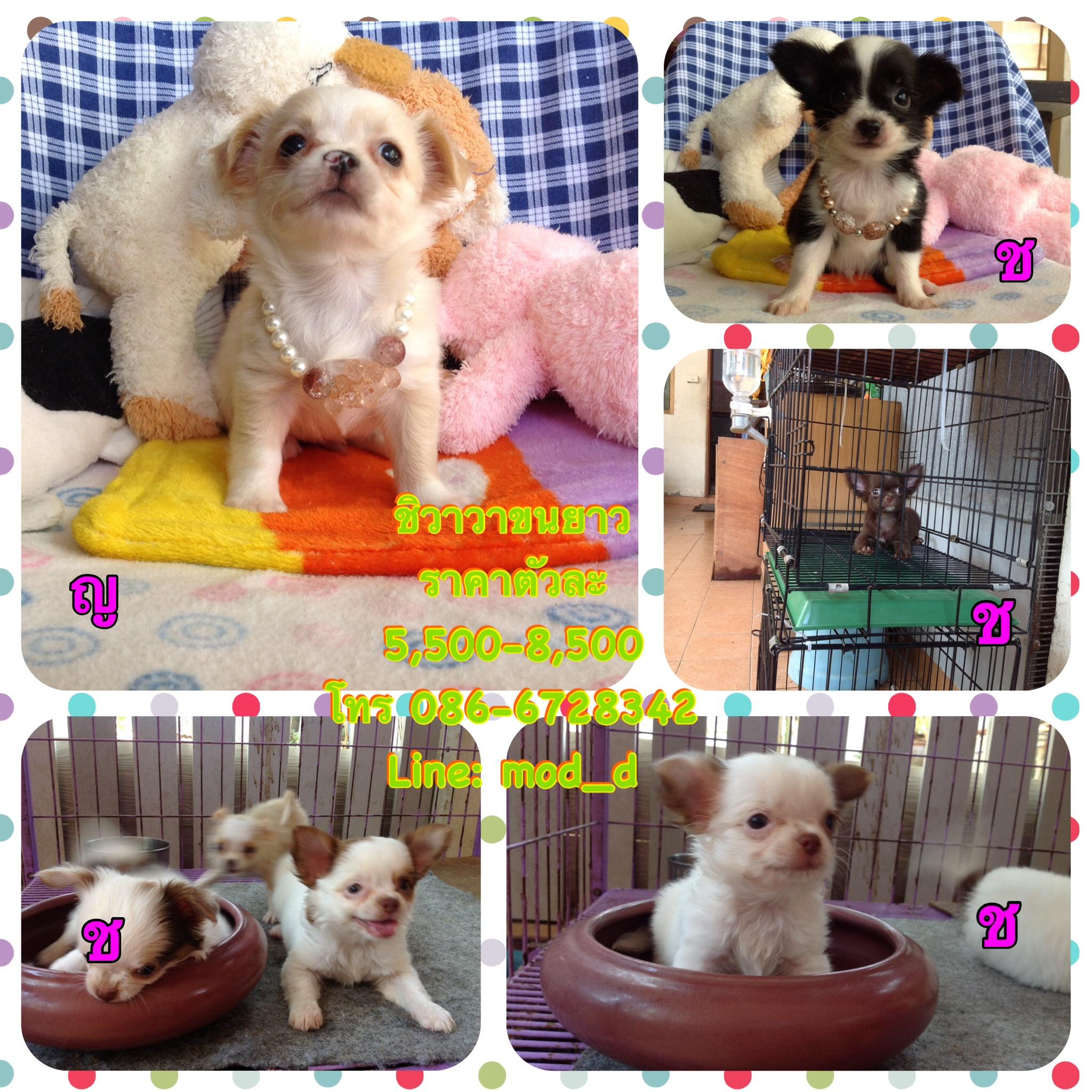 ชิวาวาขนยาว สีช็อคเข้ม สีครีม สีขาวน้ำตาล สีขาวดำ เพศเมีย เพศผู้ หน้าสั้น หัวกลมโต ราคา5,500-8,500฿ สนใจสอบถามได้ 086-6728342 มด หรือ line:mod_d ดูรูปเพิ่มเติมได้ หรือมาดูตัวจริงได้ที่บ้าน อยู่ กทม. สุวินทวงค์28