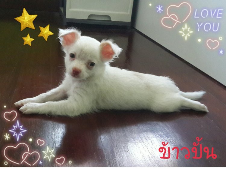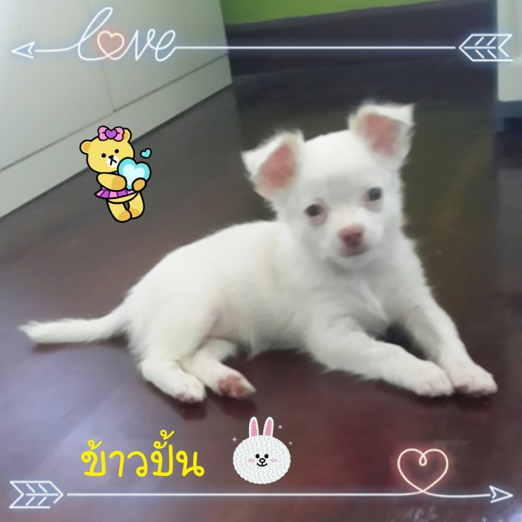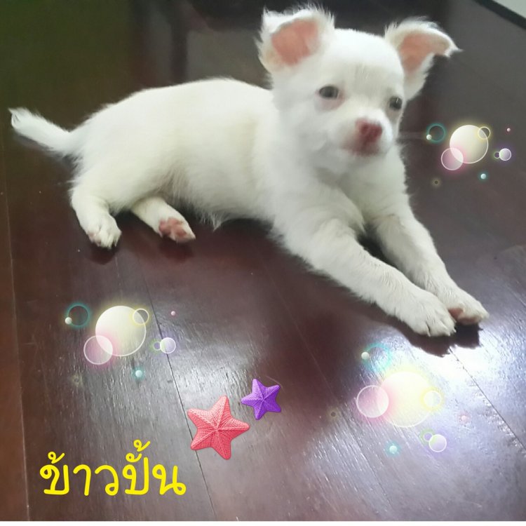 น้องข้าวปั้น ชิวาวาขนยาว เพศเมีย สีขาว-น้ำตาล ไซส์ปกติ สุขภาพแข็งแรง ปลอดโรคค่ะ สนใจสอบถามได้