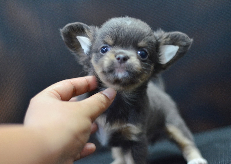 ★^-^*★ WWW.WOWWCHIHUAHUA.COM★^-^*★น้องออมสิน เพศเมียขนยาวสีเทาแทนมีคิ้ว หน้าสั้น ไซด์เล็ก น่ารักมาก