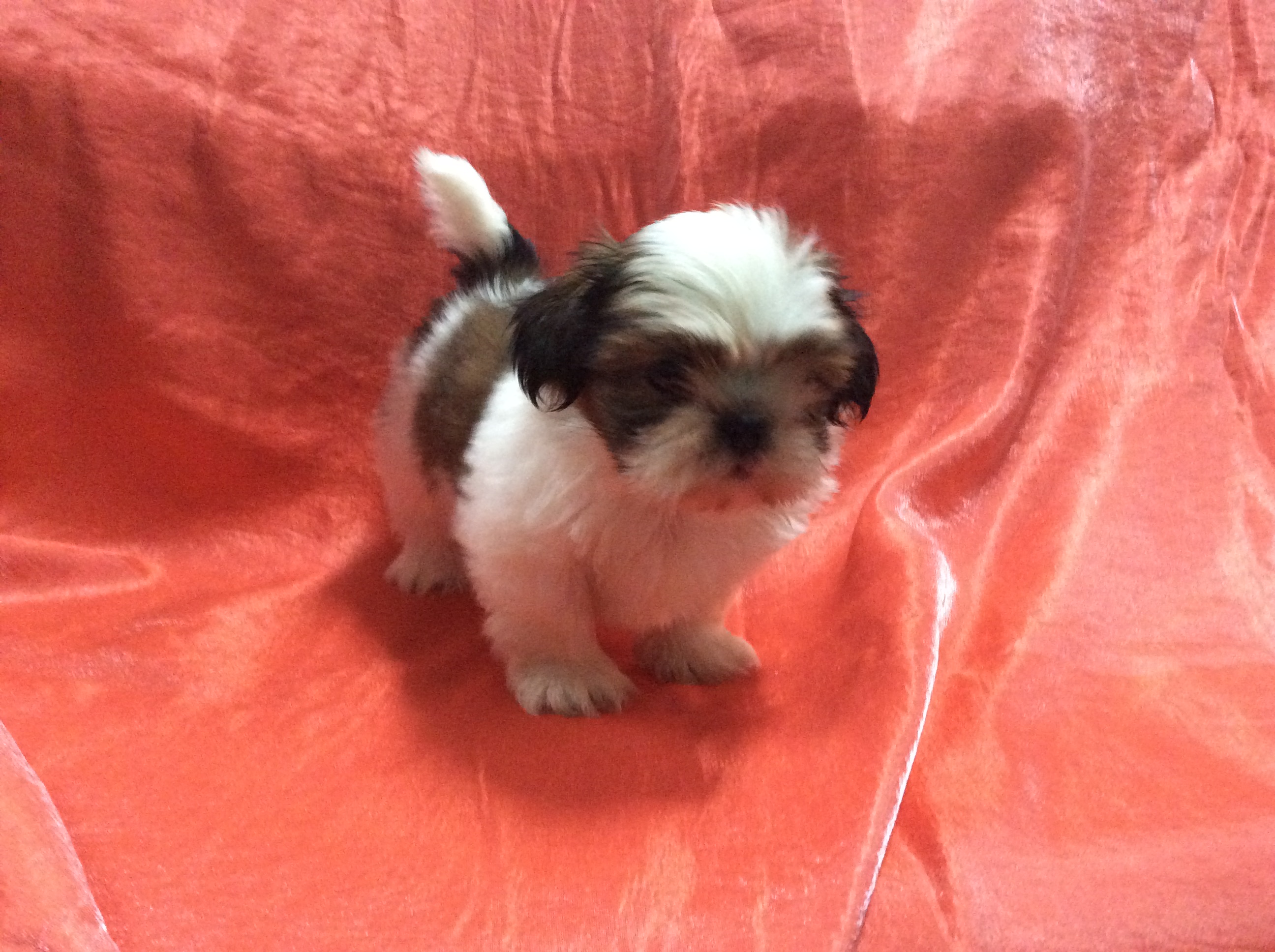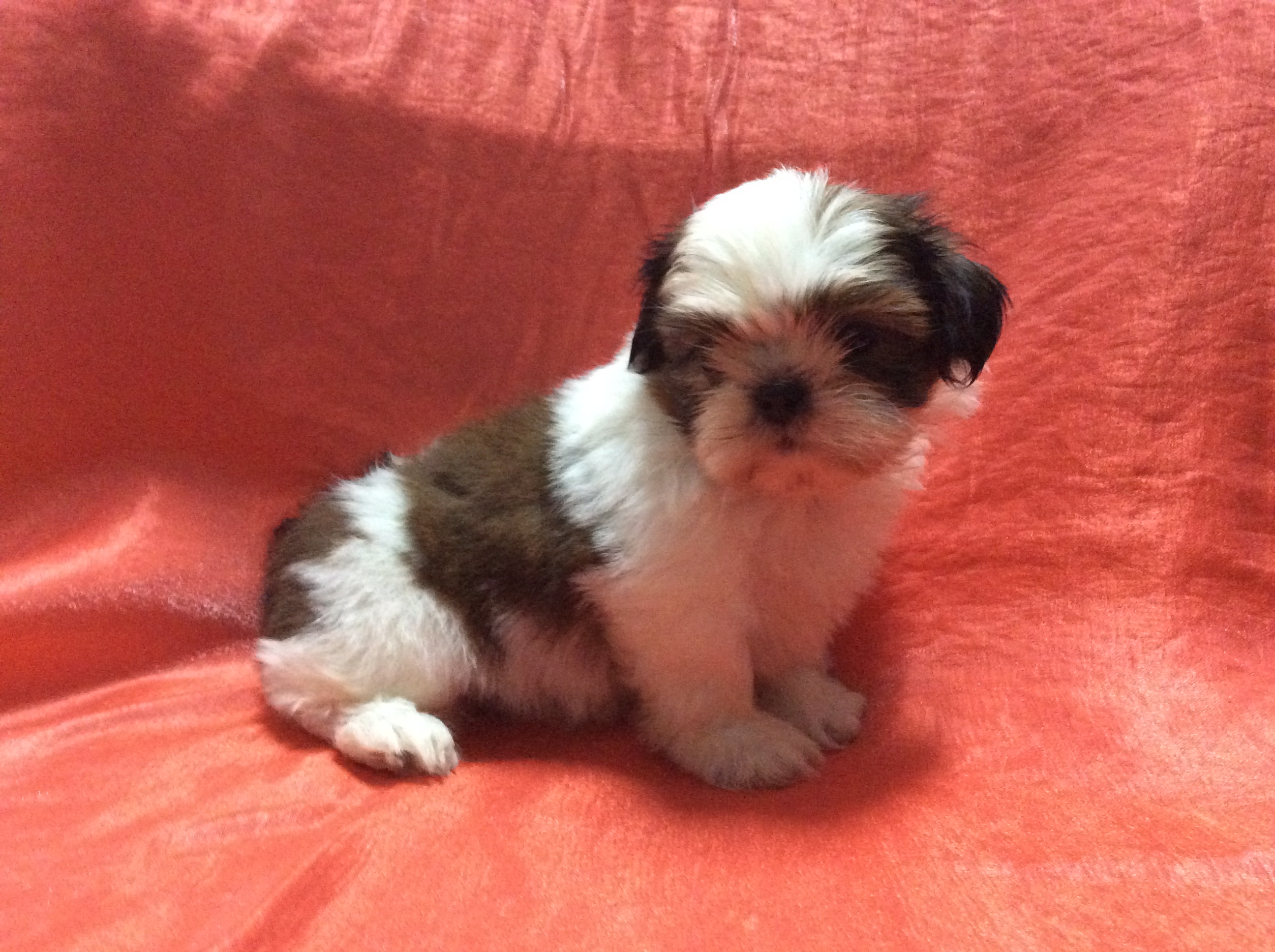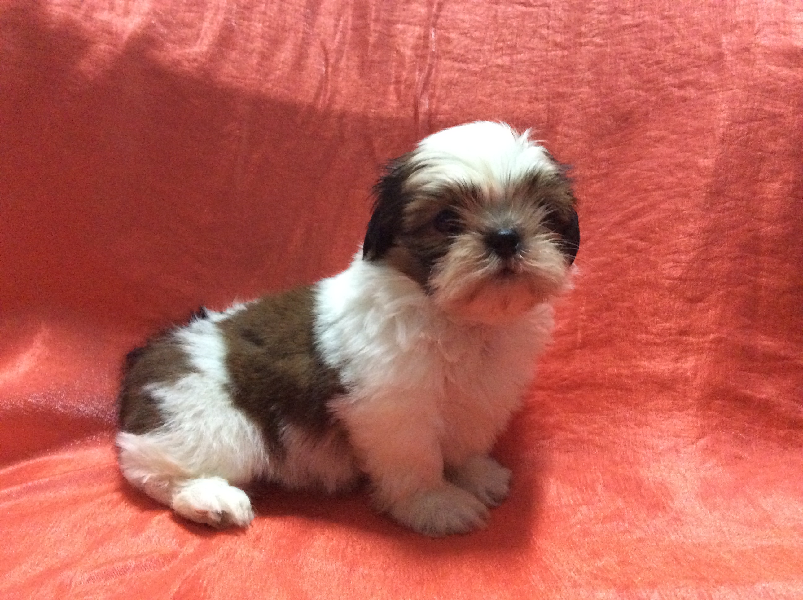 ไซส์S (ไซส์ทอยส์ โตสุดไม่เกิน5.5กก.) หน้าบี้แบน ปลายหู จมูก ปากดำ. หางยาวปลายขาว. สามตอน มาร์คกิ้งสวยๆตรงตามตำราชิสุห์ ตากลมหวาน ตัวอ้วนกลมทานเก่งมาก สุขภาพดีมาก แข็งแรงมาก สดใส ขี้เล่น