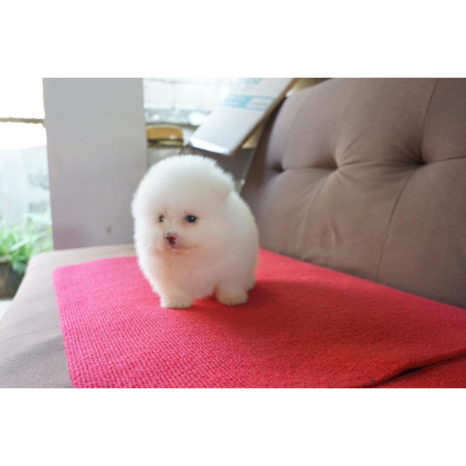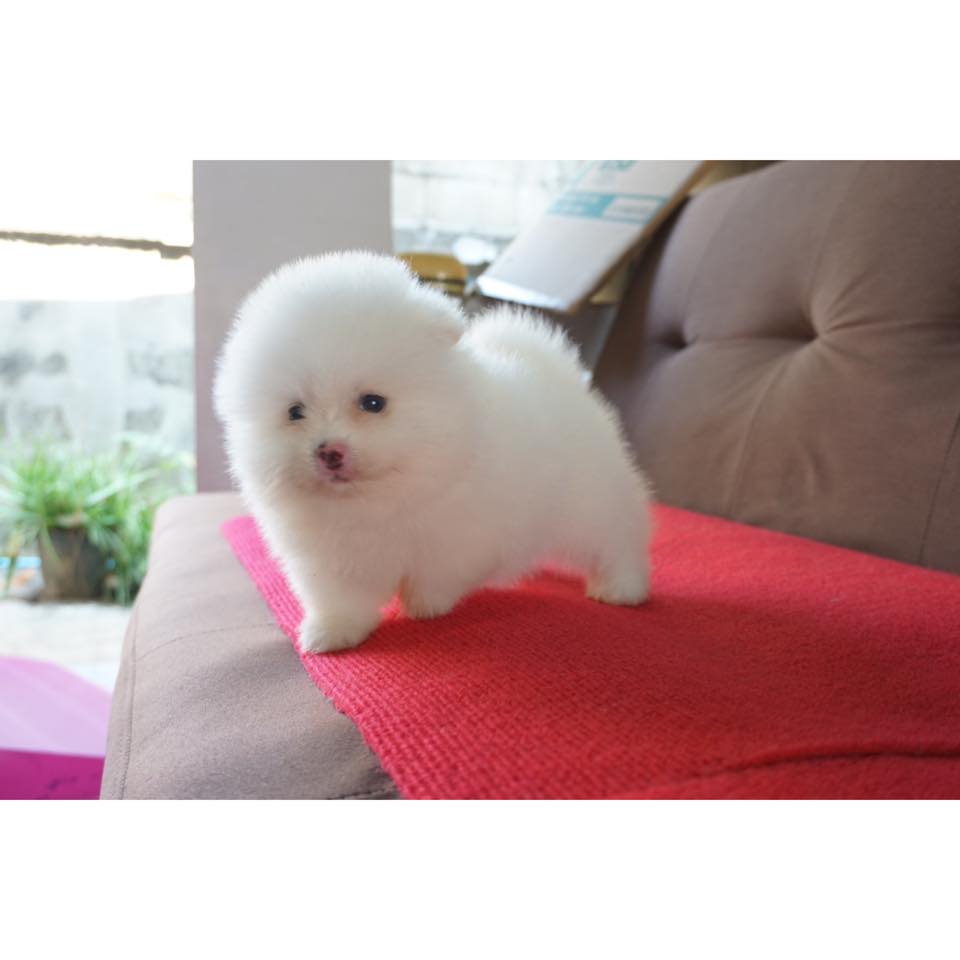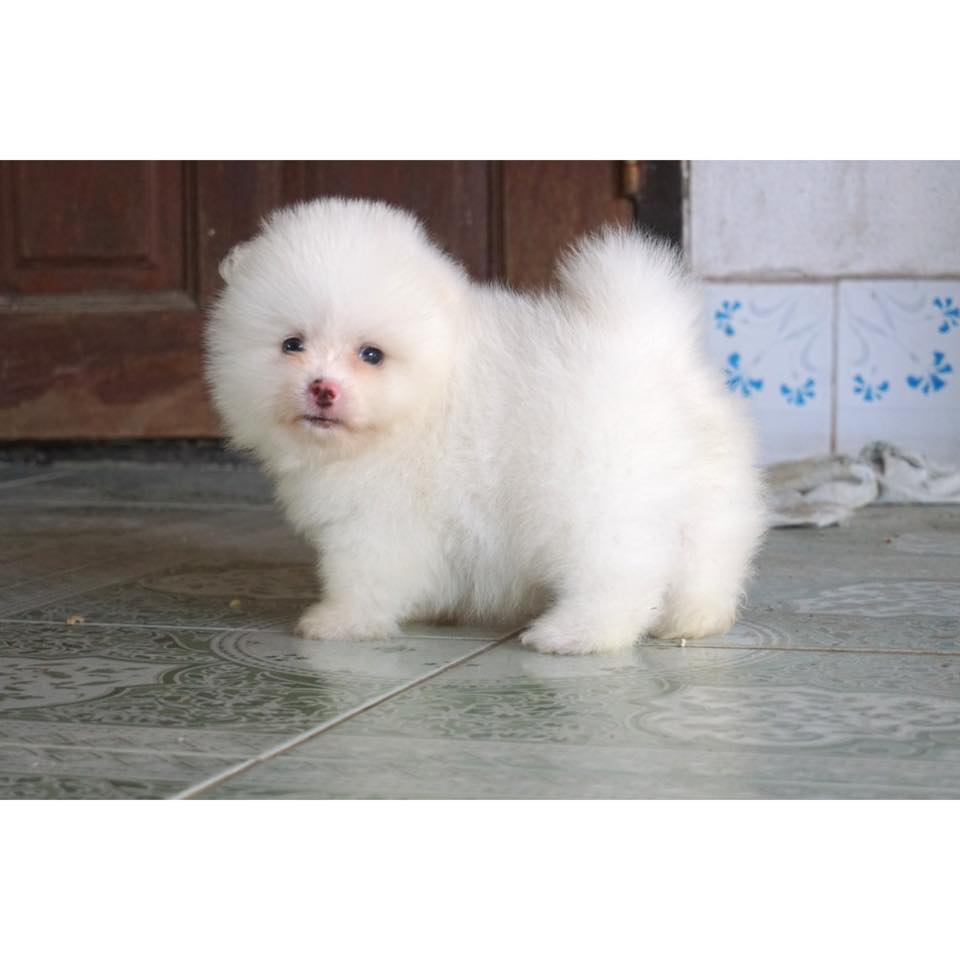 ปอมขาว เพศผู้อายุ 50 วัน ราคา 9,500 ไม่รวมค่าส่งและใบเพ็ดนะคะ