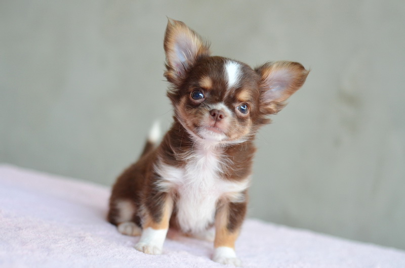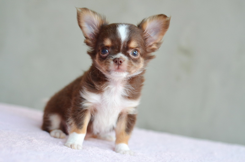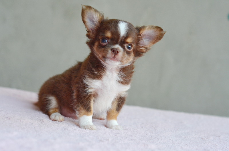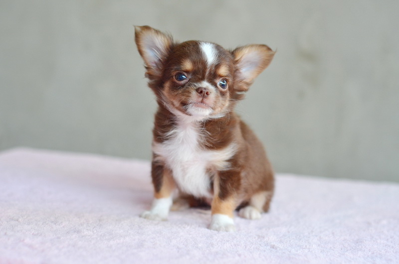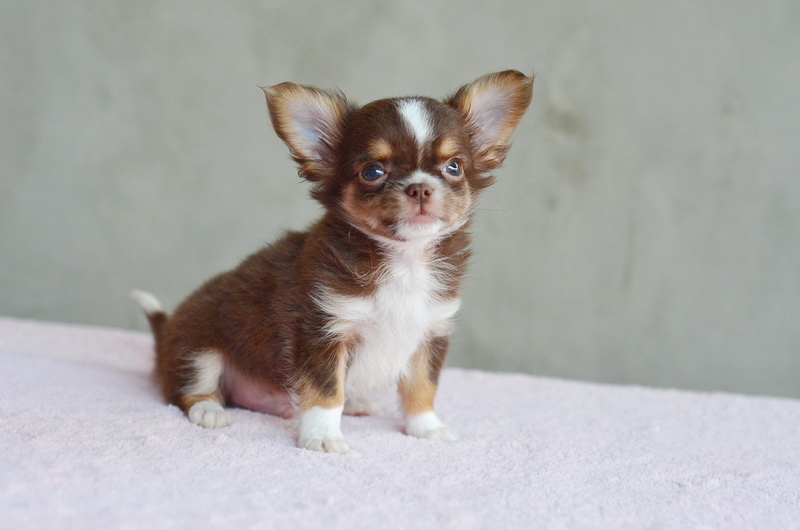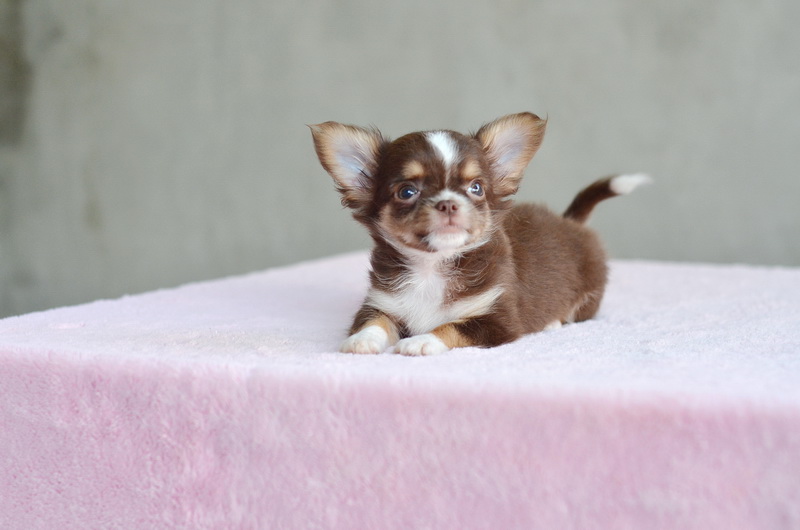 ชิวาวาเพศผู้ขนยาวสีชอคโกแลตมีคิ้ว มาร์กสวยถุงเท้าขาว หัวกลมน่ารัก สีสวยมาก ไซด์เล็ก เพดสมาคม ราคา 12500