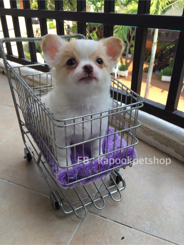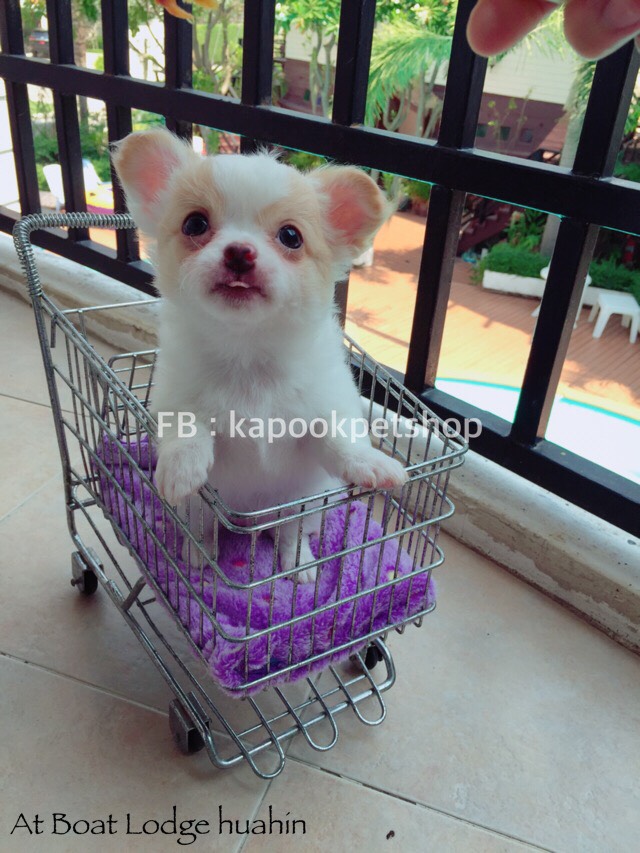 ขายลูกชิวาวา ขนยาว เพศชาย สายไต้หวัน สีขาว-ครีม