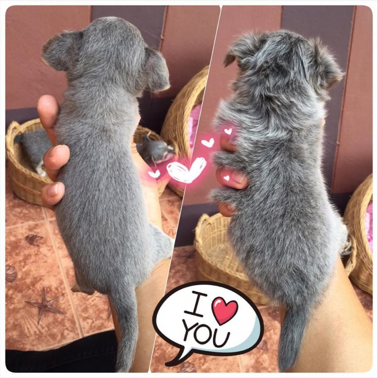 ชิวาวาเพศผู้ 1 เมีย 2 สีเทาแทนมีคิ้ว มาร์กสวยมีถุงเท้า หัวกลมน่ารัก สีสวยมาก ไซด์จิ๋ว ราคา 10000-12500