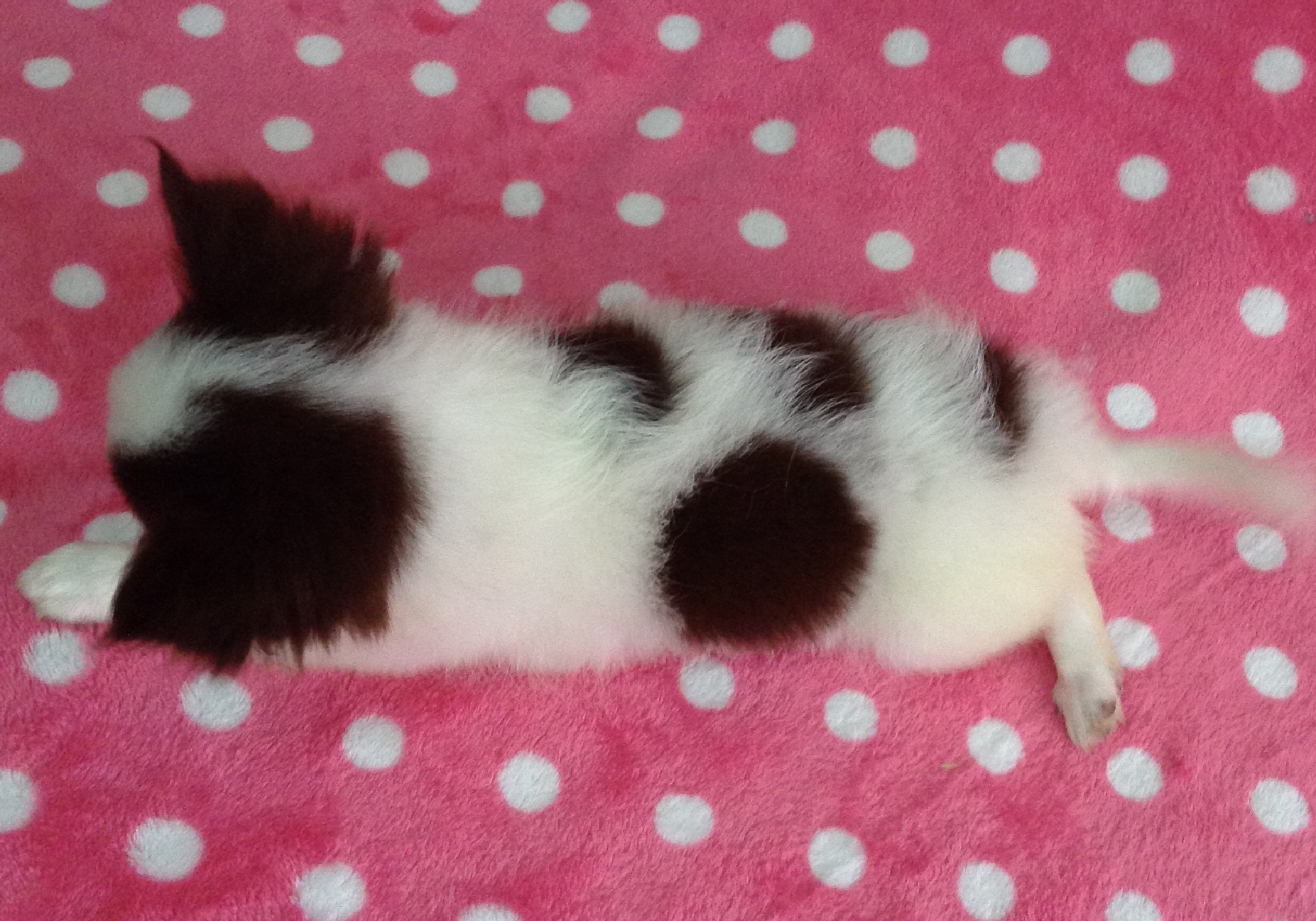 เด็กชายป๊อบคอน สีแฟนซีขาวช็อค ขนแน่นๆหนา มีคิ้วขาสั้น หน้าสั้น หุ่นดี พร้อมย้ายบ้าน ตัวเล็ก อายุสองเดือน ราคาถูกๆ