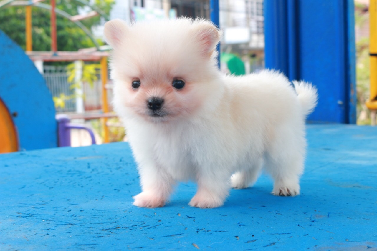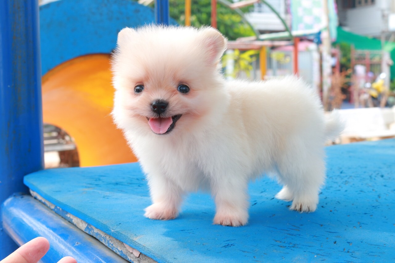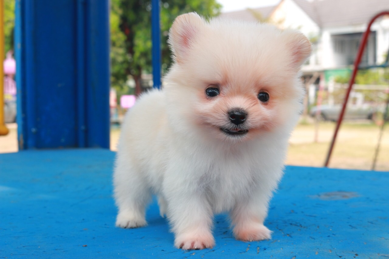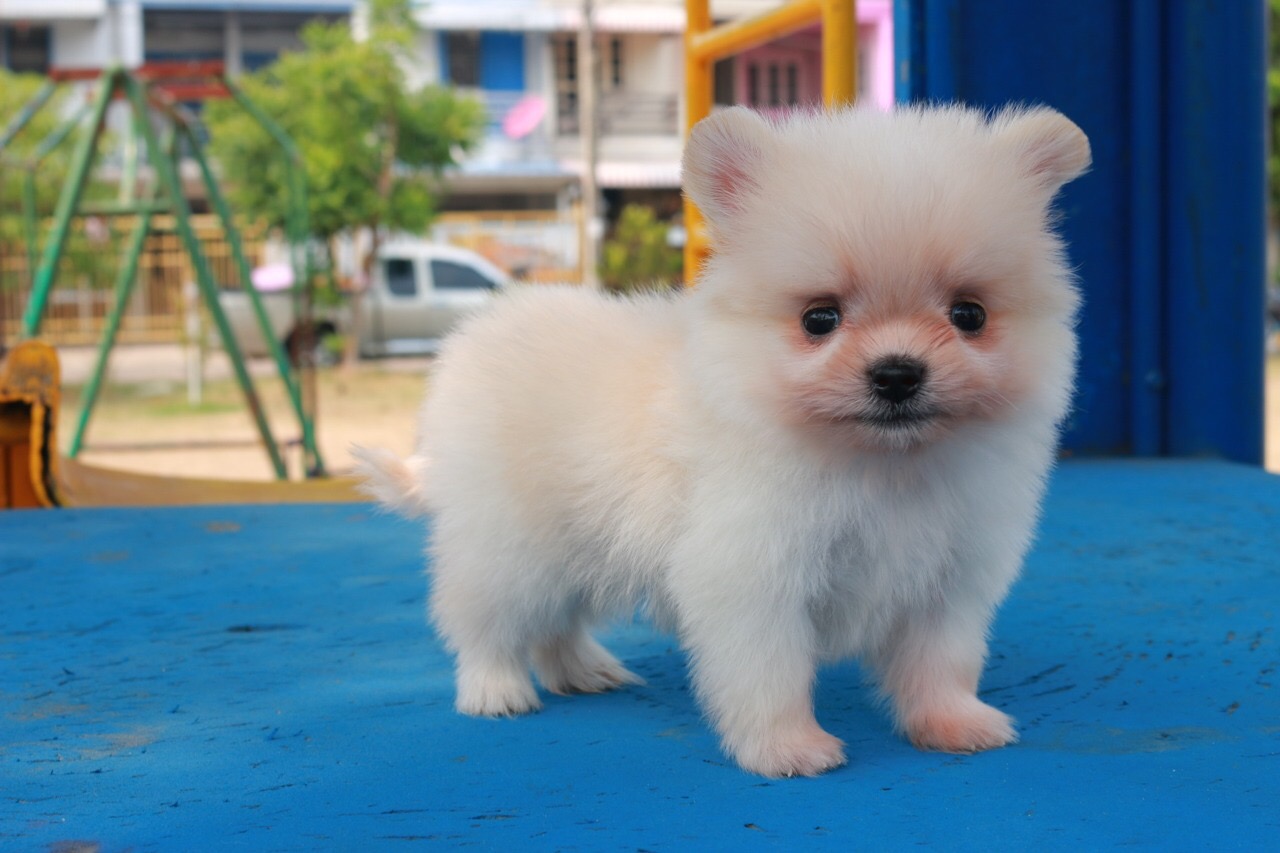 ขายลูกปอม90%(ลูกซาน่า) ตัวเล็ก เพศผู้ สีขาวครีม ขนฟูแน่น พร้อมประกันสุขภาพ