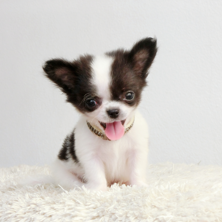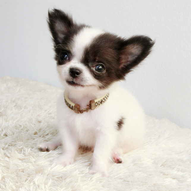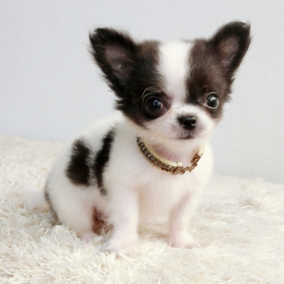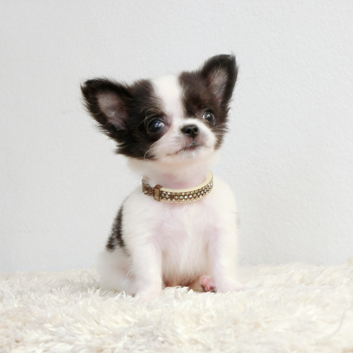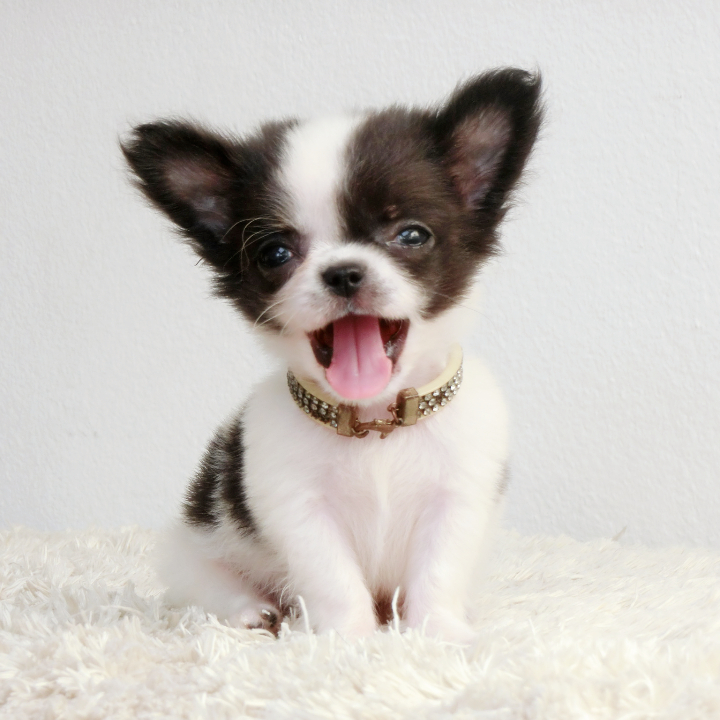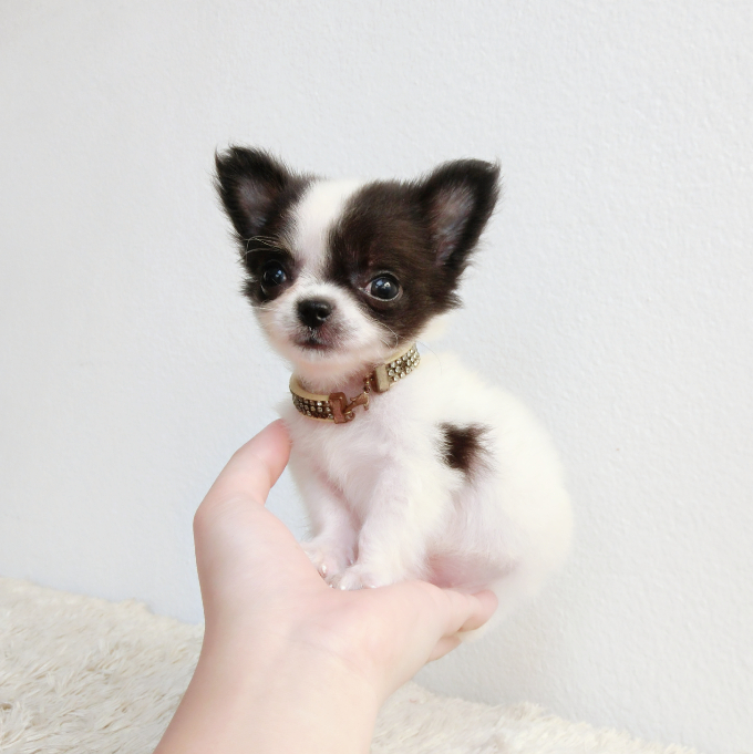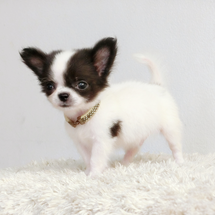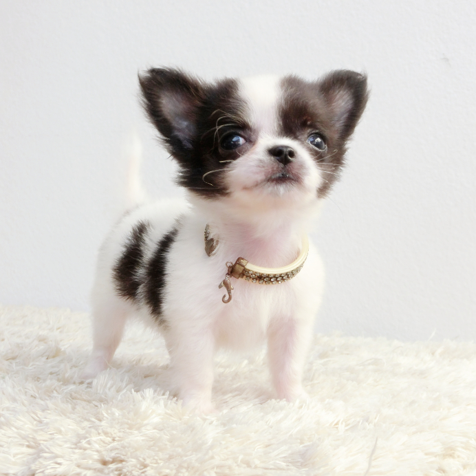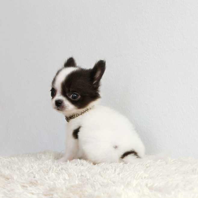 -ชิวาวาขนยาว ตัวเล็กจิ๋ว เพศผู้ สีขาว-ดำ