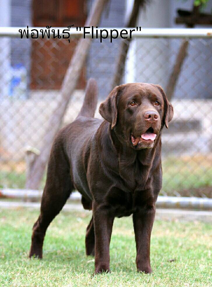 “FLIPPER” เป็นพ่อพันธุ์ลาบราดอร์สีชอคโกแลตนำเข้าจากสาธารณรัฐเช็ก ดีกรีไทยแลนด์แชมป์ ด้วยโครงสร้างสวยสมบูรณ์แบบ กระดูกใหญ่หัวสวย นิสัยเรียบร้อย อารมณ์ดีมาก ซึ่งโครงสร้างนิสัยที่ดีเหล่านี้จะถ่ายทอดพันธุกรรมไปถึงลูกได้ดีด้วย