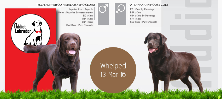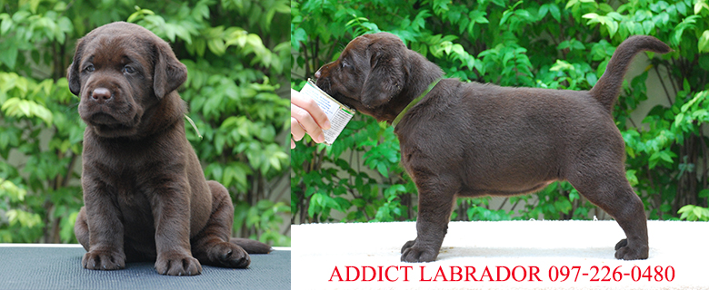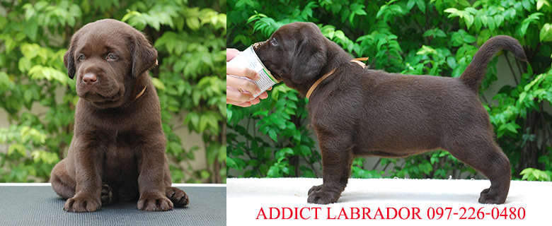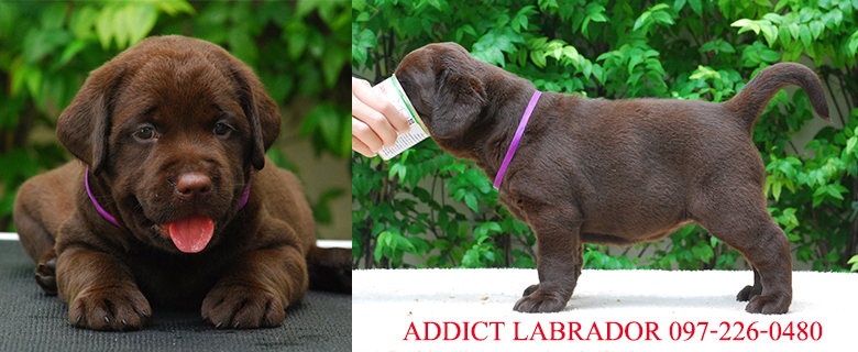 Addict Labrador เปิดรับจองลูกสุนัขลาบราดอร์สีชอคโกแลต พันธุ์แท้ เกรดประกวด จากพ่อพันธุ์ไทยแลนด์แชมป์ และแม่พันธุ์สายเลือดอินเตอร์แชมป์ ลูกสุนัขเกิดวันที่ 13 มีนาคม 2559