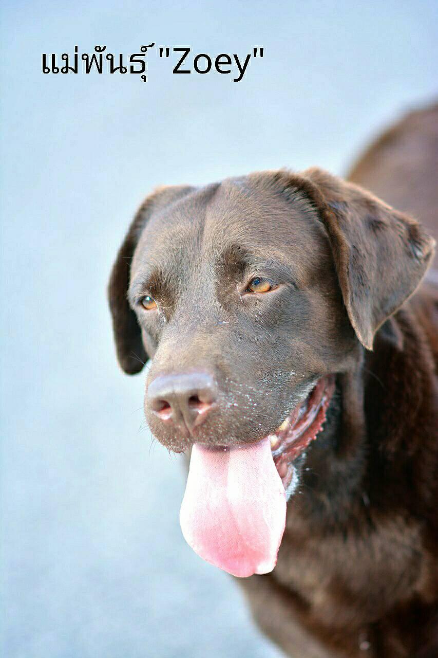 “ZOEY” เป็นแม่พันธุ์ลาบราดอร์สีชอคโกแลตที่มีสายเลือดอินเตอร์แชมป์ทั้งจากทางพ่อและแม่ โครงสร้างดี พลังงานสูง มีสัญชาติญาณของการเป็นจ่าฝูง และฉลาดสุดๆ ซึ่งโครงสร้างนิสัยที่ดีเหล่านี้จะถ่ายทอดพันธุกรรมไปถึงลูกได้ดีด้วย