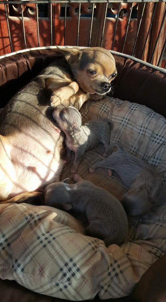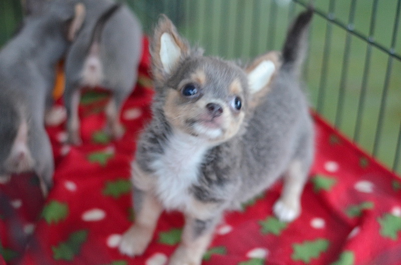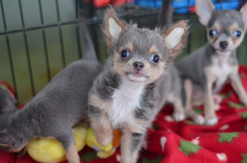 ชิวาวาเพศผู้ 1 เมีย 2 สีเทาแทนมีคิ้ว มาร์กสวยมีถุงเท้า หัวกลมน่ารัก สีสวยมาก ไซด์จิ๋ว ราคา 10000-12500 พ่อสีชอค แม่สีเทา สายสีสวยแน่นมาก)