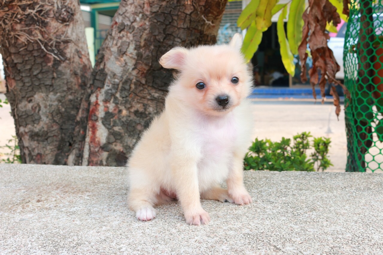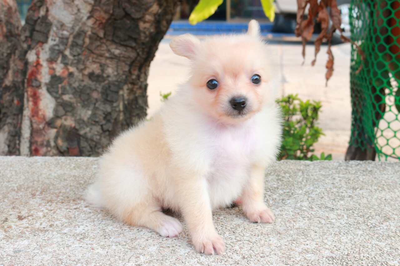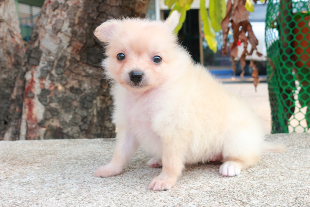 ขายลูกปอม90%(ลูกทีด้า) ตัวเล็ก เพศเมีย สีครีม ขนฟูแน่น พร้อมประกันสุขภาพ