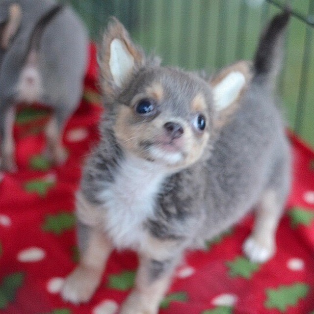ชิวาวาสีเทาขนยาว สีสวยมาก น่ารักมาก