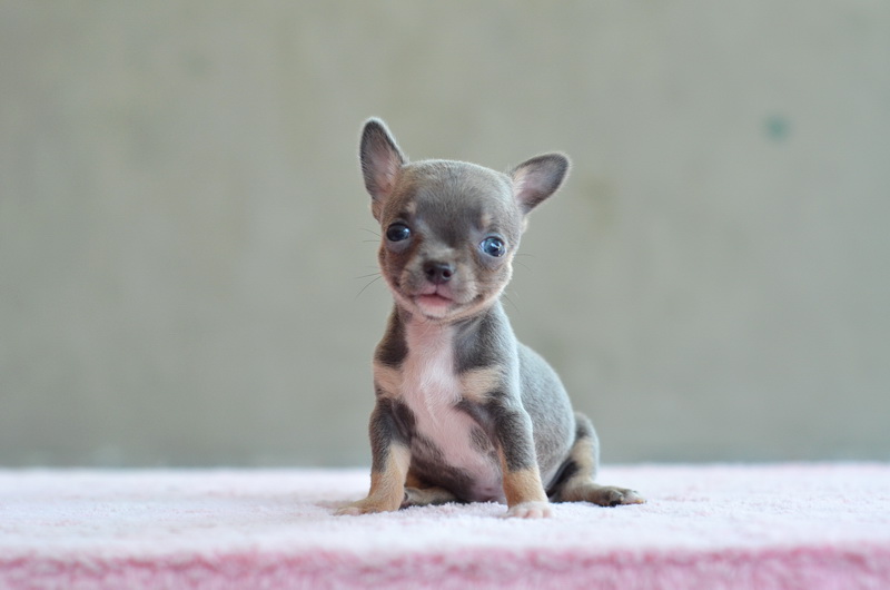 ชิวาวาเพศผู้ขนสั้นสีเทาแทน มาร์กกิ้งสวย หน้าสั้น หัวแอปเปิลโดมน่ารัก ขาสั้นหุ่นสวย ขนแน่น เพดสมาคม ราคา 8500