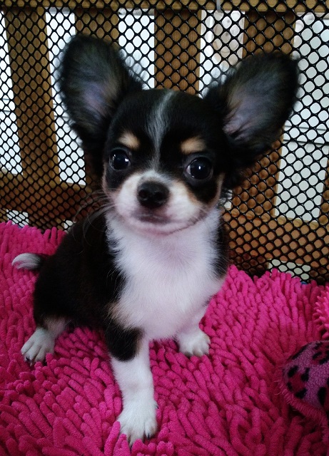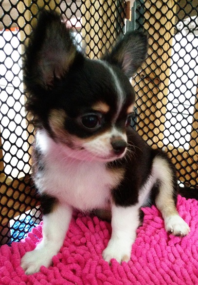 ชิวาวา เพศผู้ ไตรคัลเลอร์ แบล็ค แทน ขาว เกิด 07 มกราคม 2559 มาร์คกิ้งสวย มีถุงเท้าขาว 4 ข้าง หางดอก
