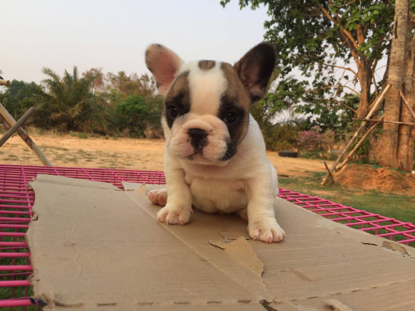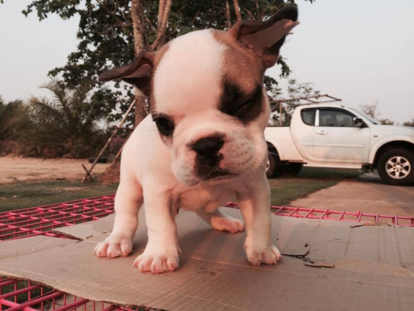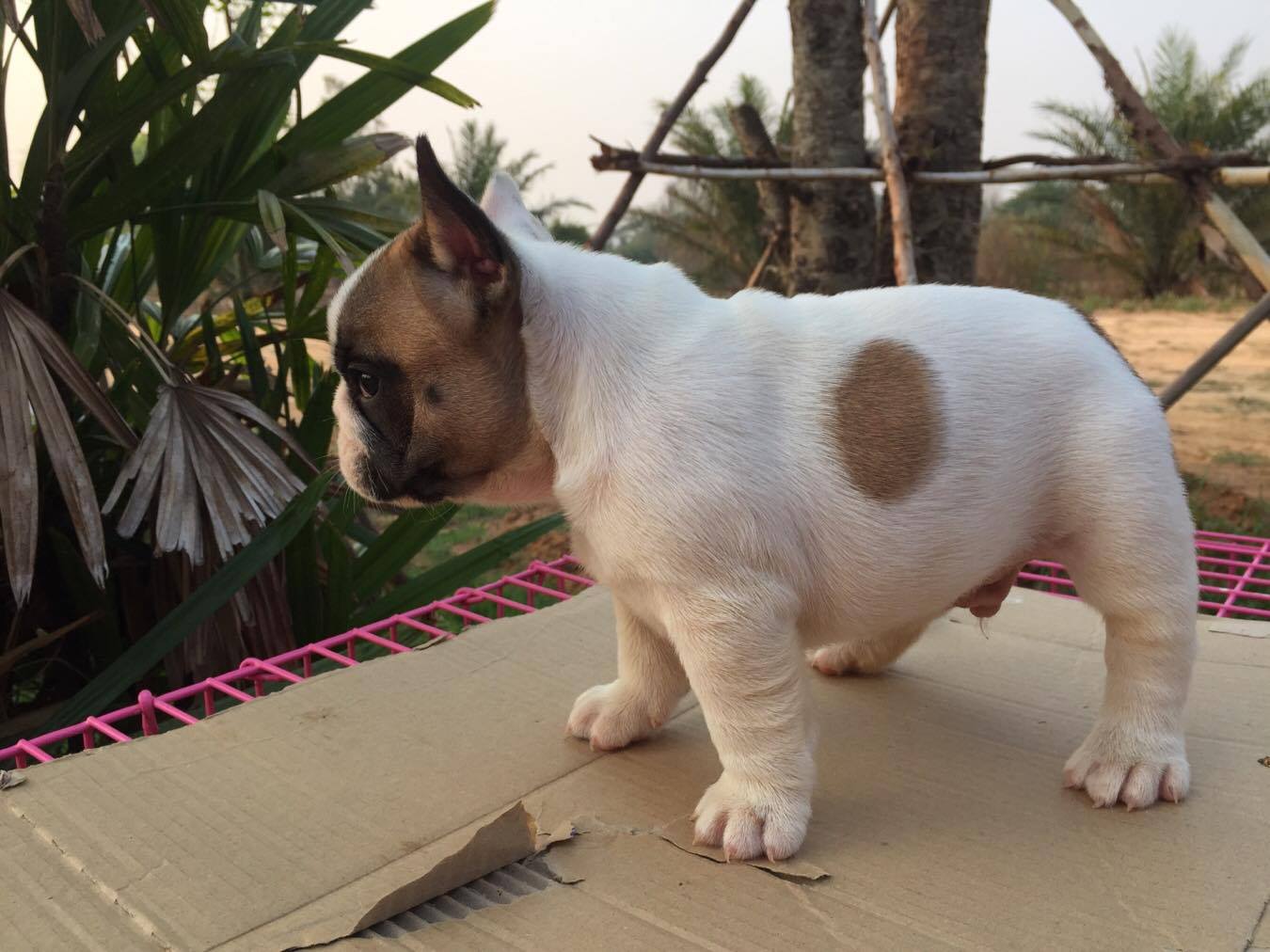 ลูกสุนัข French bull dog เพศผู้ สีขาว-น้ำตาล 3 ตัว อายุ 50 วัน พร้อมวัคซีนเข็มแรก ร่าเริง แข็งแรง