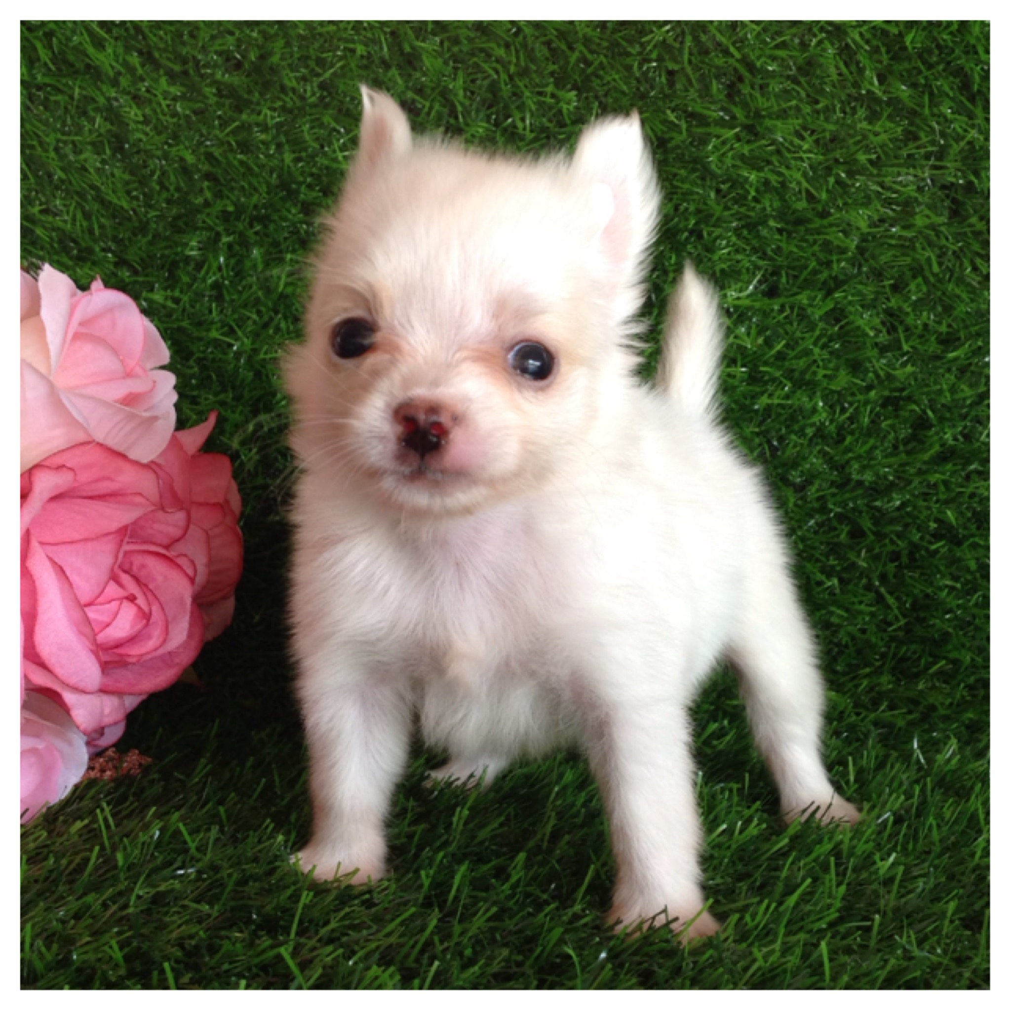 ชิวาวาขนยาว สีขาว เพศเมีย ไซส์เล็ก อายุ50วัน วัคซีนพร้อมถ่ายพยาธิ ราคาเบาๆ (บริการส่งทั่วไทย)