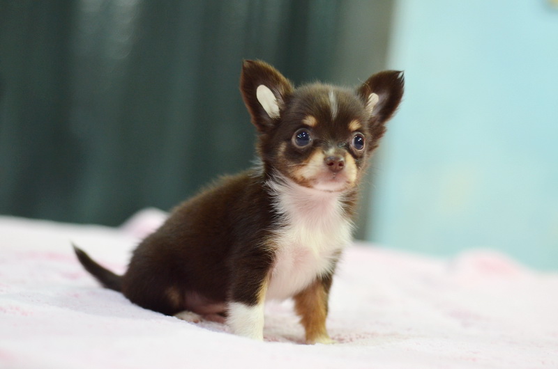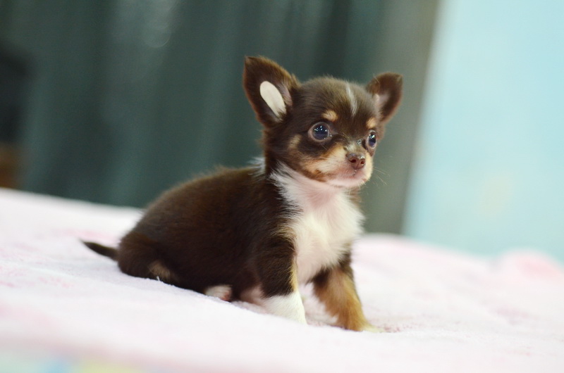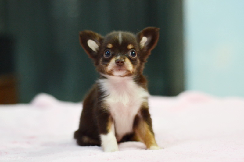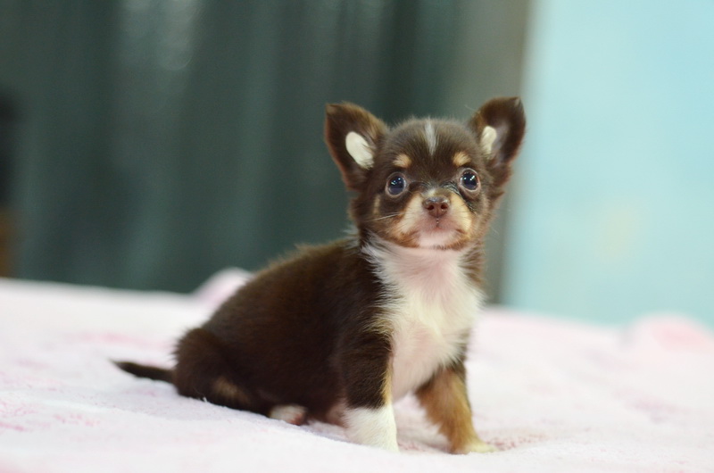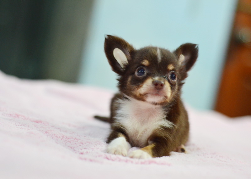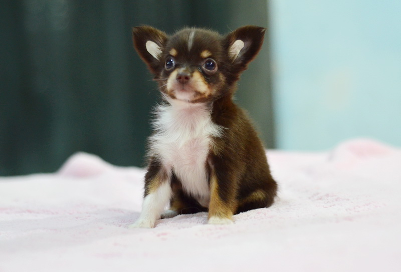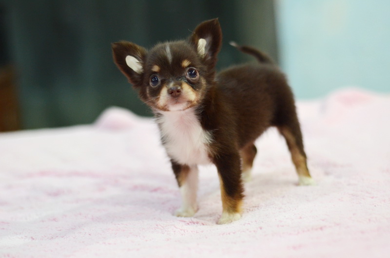ชิวาวาเพศเมียขนยาวสีชอคแทน มาร์กกิ้งสวยมีถุงเท้ามีคิวมีแก้ม ไซด์เล็ก ราคาพิเศษ 8900