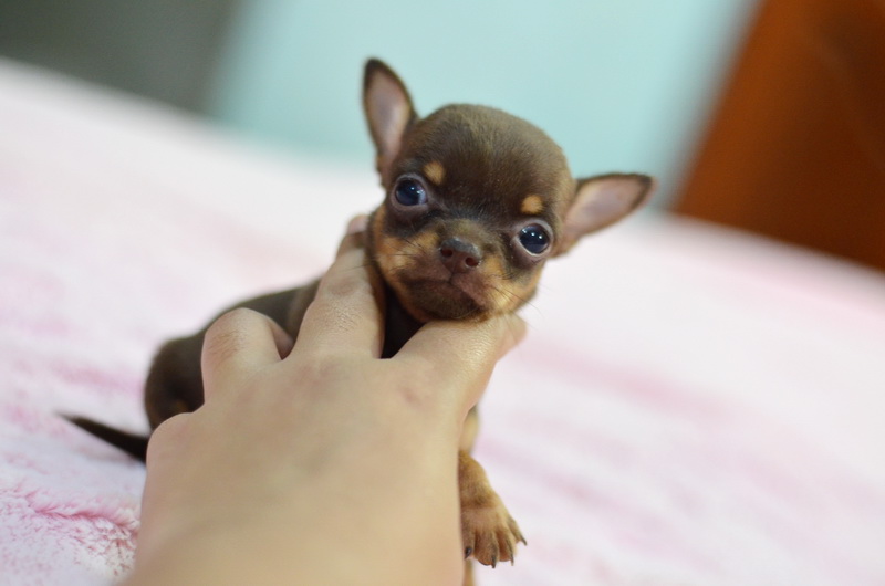 ชิวาวาเพศเมียขนสั้นสีชอคแทน มาร์กกิ้งสวย หัวกลมน่ารัก ขาสั้นหุ่นสวย เพดสมาคม ราคา 7900