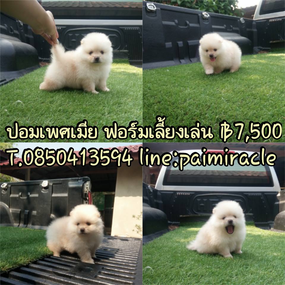 ปอมเพศเมีย สีขาวครีม ฟอร์มเลี้ยงเล่นไซต์มาตราฐาน[มีรูปพ่อแม่] เกิด 23 มีนาคม 2559 แข็งแรงทานอาหารเองได้แล้ว พร้อมย้ายบ้าน ลูกค้าที่อยู่ลำปางหรือจังหวัดใกล้เคียงมาดูเด็กๆได้ที่บ้านข้างเซนทรัลลำปางทางเรามีบริการจัดส่งและส่งทางเครื่องบิน