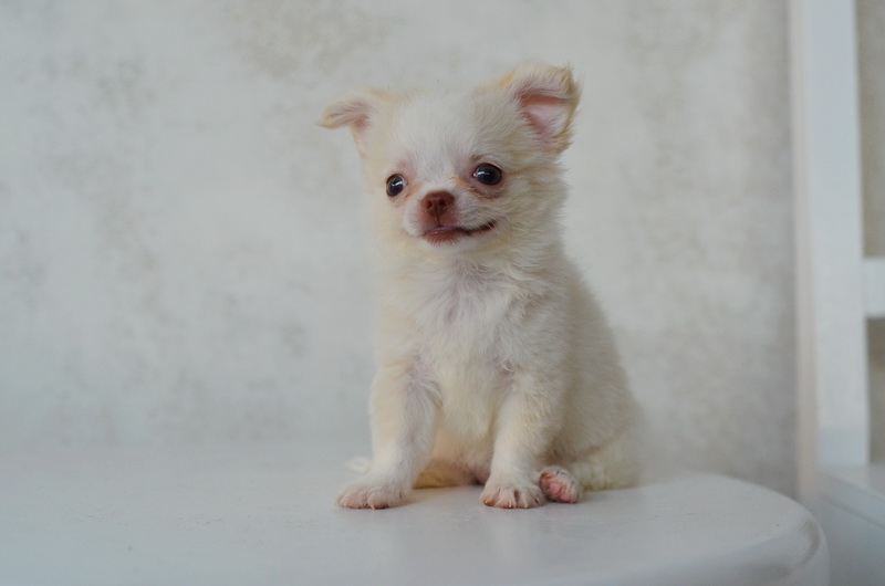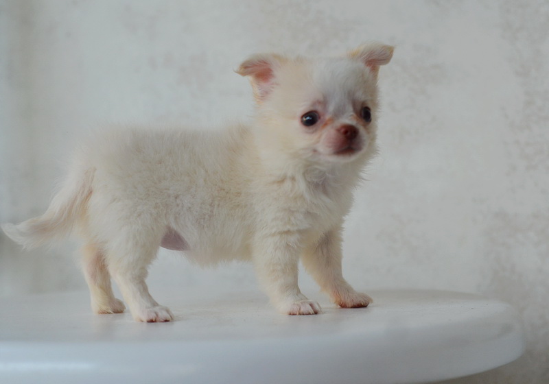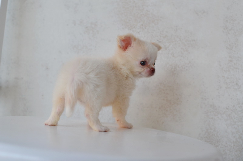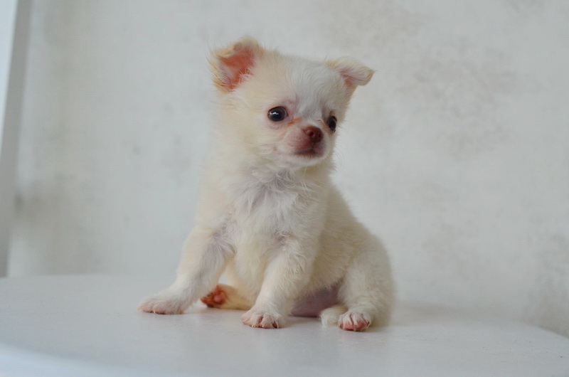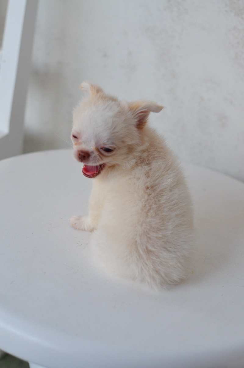 ★^-^*★ WWW.WOWWCHIHUAHUA.COM★^-"น้องนมสด" เพศเมียขนยาวสีขาวครีม หัวโตสวย หน้าสั้น ตาสีเทาจมูกสีชมพู