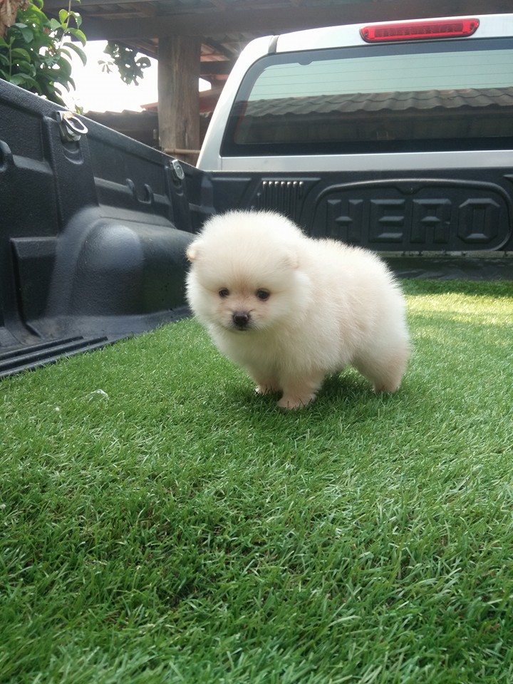 ปอมเพศเมีย สีขาวครีม ฟอร์มเลี้ยงเล่นไซต์มาตราฐาน[มีรูปพ่อแม่] เกิด 23 มีนาคม 2559 แข็งแรงทานอาหารเองได้แล้ว พร้อมย้ายบ้าน ลูกค้าที่อยู่ลำปางหรือจังหวัดใกล้เคียงมาดูเด็กๆได้ที่บ้านข้างเซนทรัลลำปางทางเรามีบริการจัดส่งและส่งทางเครื่องบิน