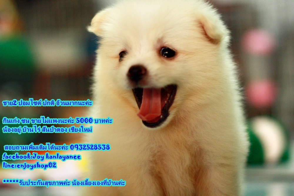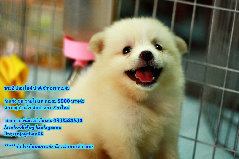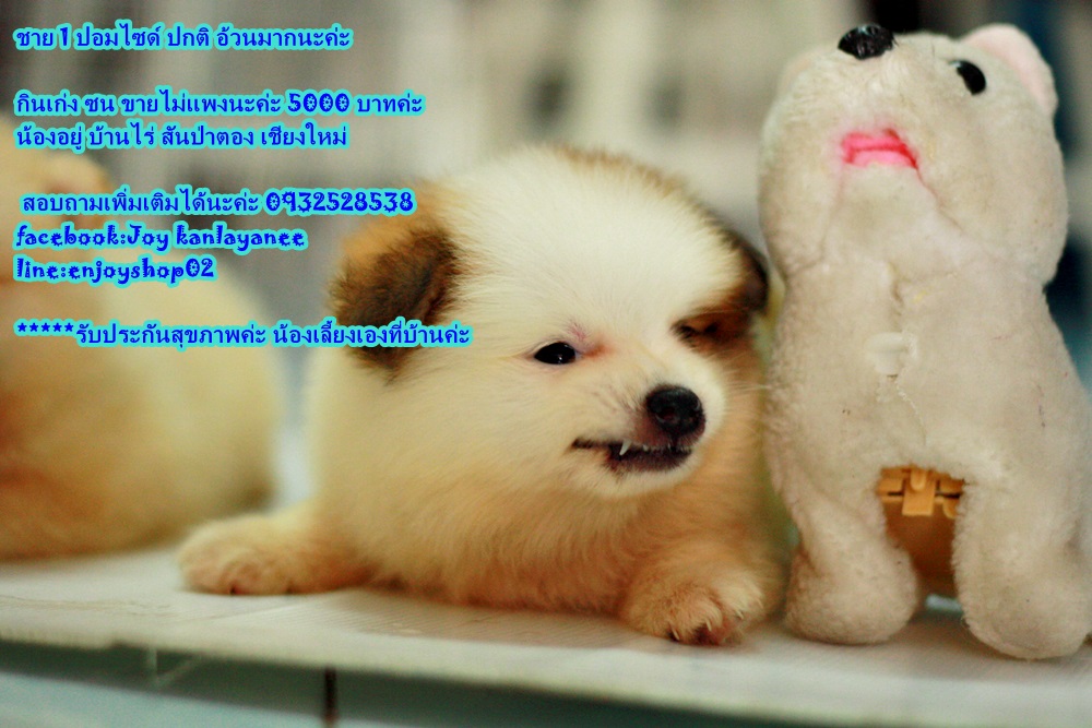 น้องหมาพันธ์ปอม ราคา 5000 บาททุกตัว ยังว่างยุนะค่ะ ชาย 2 หญิง 1 เกิดวันที่ 21 มี ค สุขภาพแข็งแรง น้าเลี้ยงอย่างดีค่ะ น้องอยู่บ้านไร่ สันป่าตอง เชียงใหม่ มารับเองมีส่วนลดค่ะ (บริการส่งต่างจังหวัด ที่มีสนามบินนะค่ะ) สอบถามเพิ่มเติม 0932528538 facebook: Joy kanlayanee line:enjoyshop02 page :enjoyshop petshop