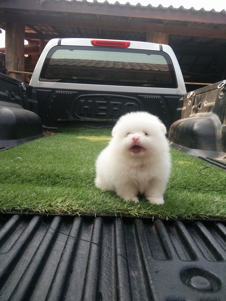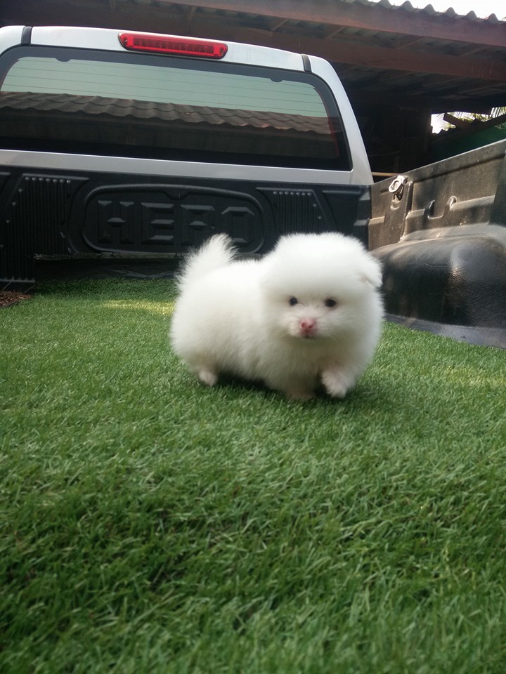 ปอมเพศผู้ตัวที่ 3 สีขาว ฟอร์มเลี้ยงเล่นไซต์มาตราฐาน[มีรูปพ่อแม่] เกิด 23 มีนาคม 2559 แข็งแรงทานอาหารเองได้แล้ว ฉีดวัคซีนรวมแล้วเข็มแรก พร้อมย้ายบ้าน ลูกค้าที่อยู่ลำปางหรือจังหวัดใกล้เคียงมาดูเด็กๆได้ที่บ้านข้างเซนทรัลลำปางทางเรามีบริการจัดส่งและส่งทางเครื่องบิน