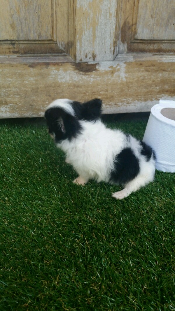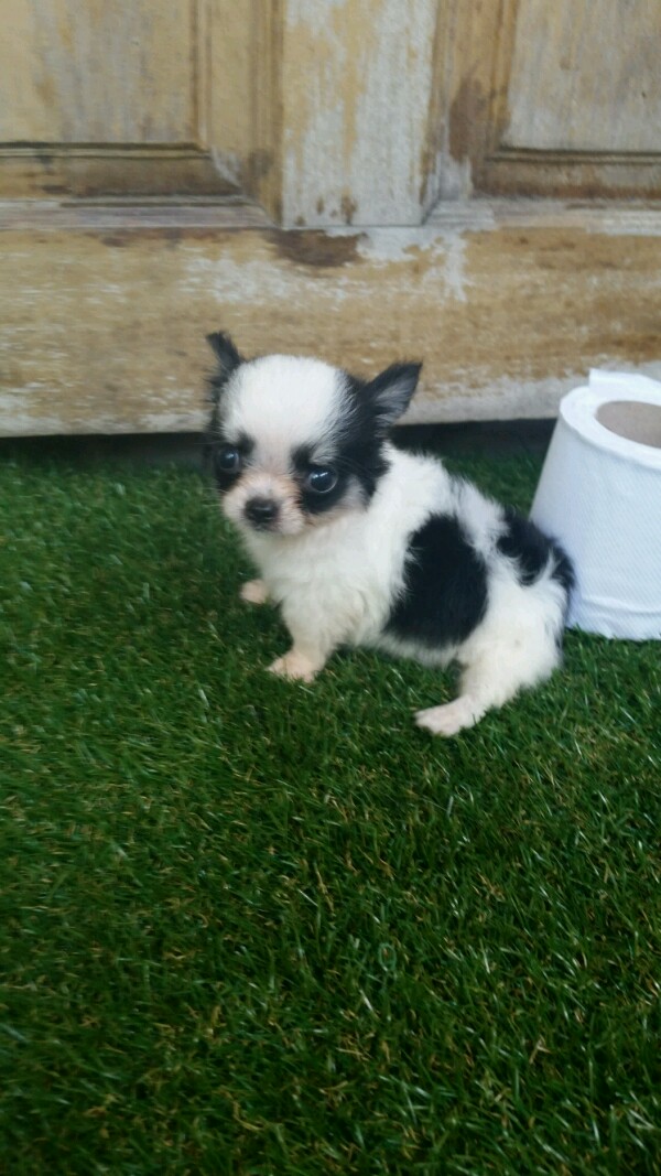 ชิวาวาแท้ ขนยาว เพศผู้ สีขาวดำ