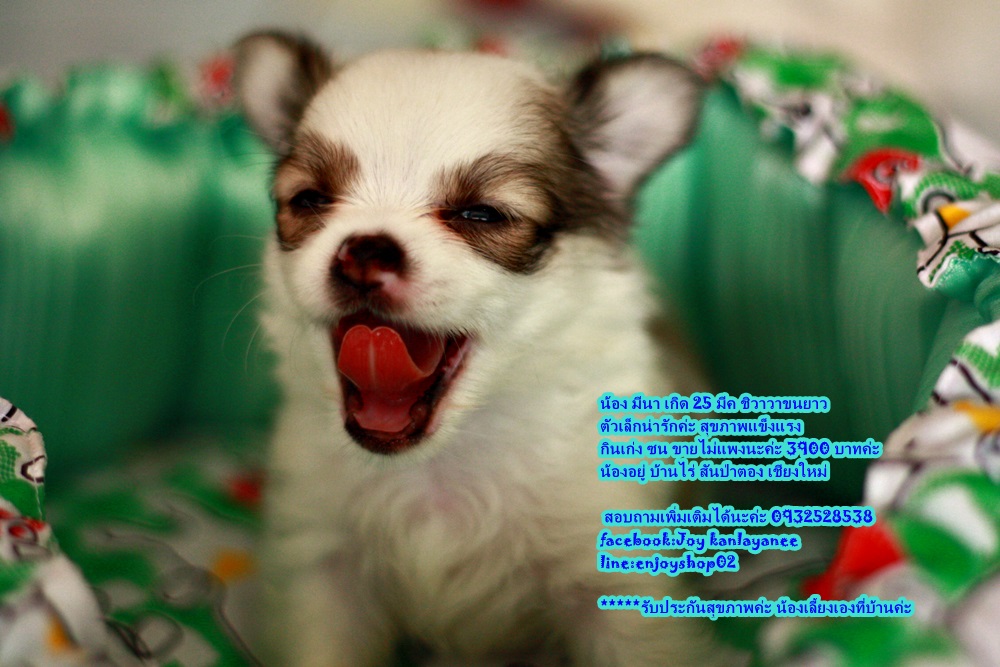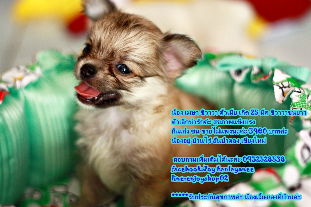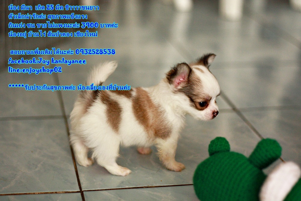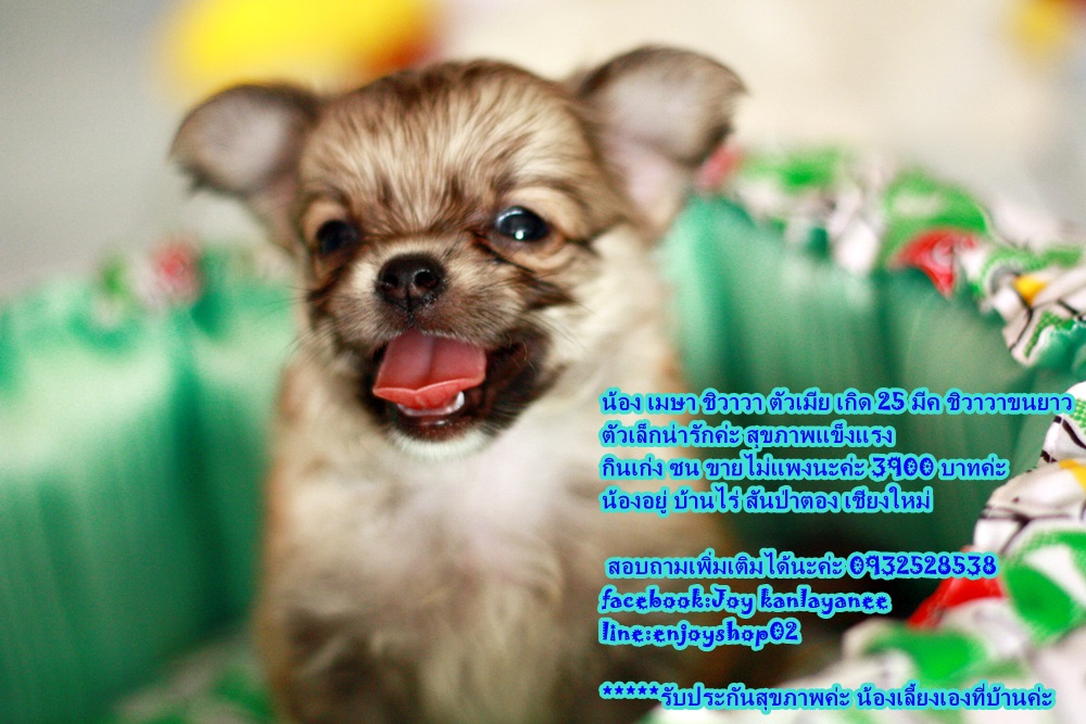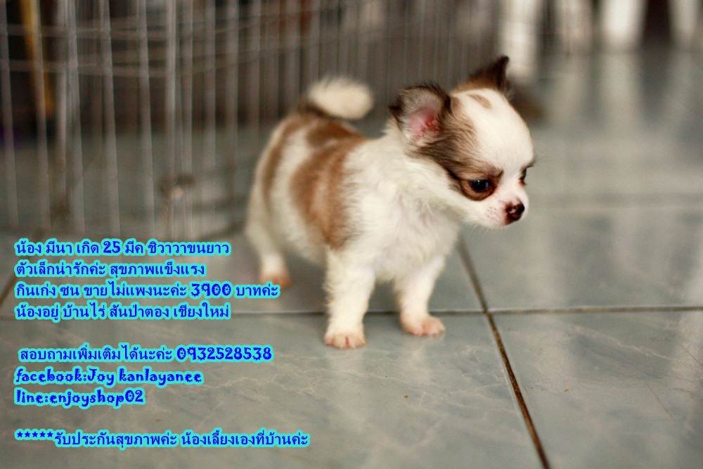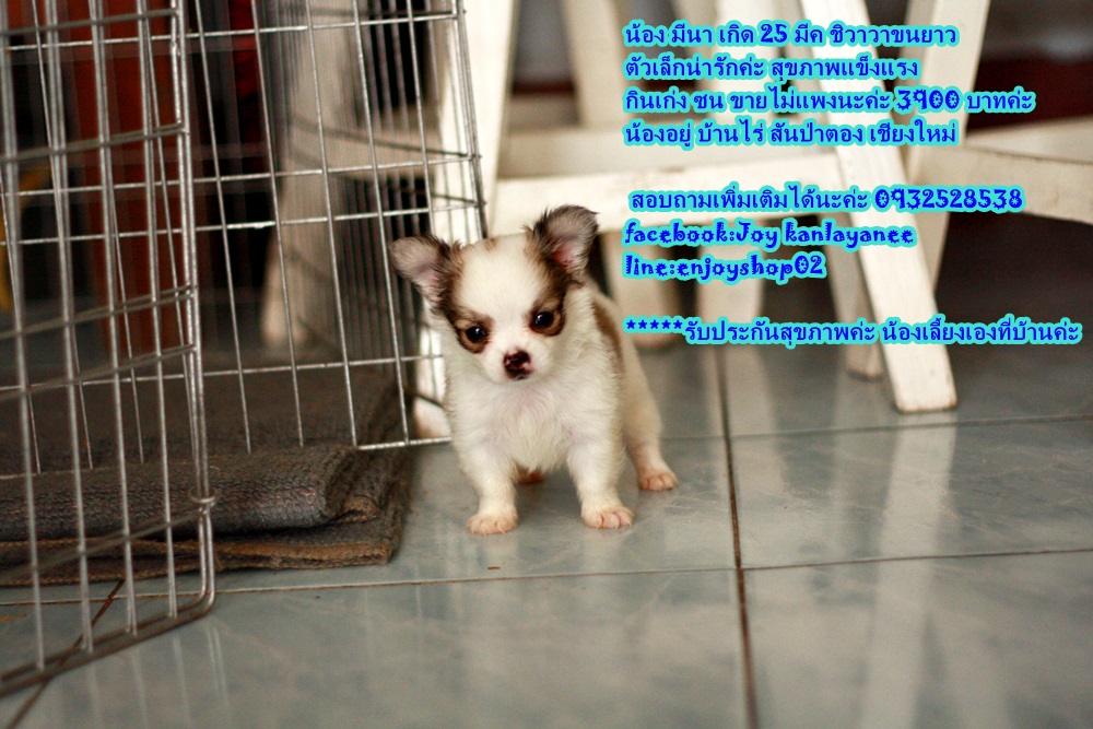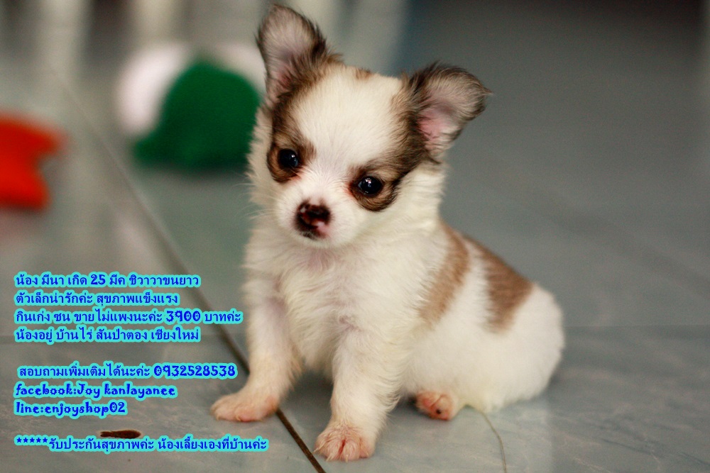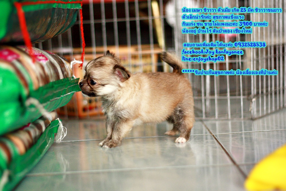 ชิวาวาขนยาวน้องมิน น้องเมย์ ตัวเมีย 1 ตัว ตัวผู้ 1 ตัว เกิดวันที่ 25 มีค ตัวเล็กแข็งแรง ซน ชอบอยู่ใกล้ๆ ยิ้มตลอด น้องอยู่บ้านไร่ สันป่าตอง เชียงใหม่ค่ะ มาดูตัวจริงได้ หรือสอบถามเพิ่มเติม 0932528538 facebook: Joy kanlayanee page:enjoyshop petshop line:enjoyshop02 ราคาไม่แพงแบ่งกันเลี้ยงนะค่ะ 3900 บาทค่ะมารับเองลดได้ค่ะ บริการส่งน้องหมาทางเครื่องบิน สำหรับต่างจังหวัดนะค่ะ