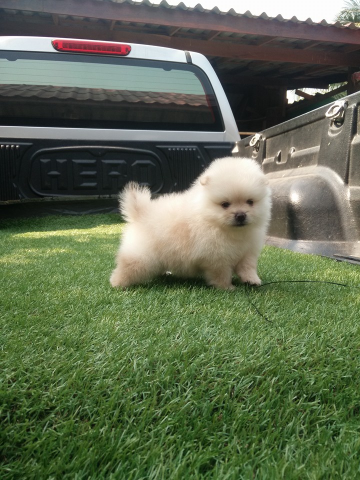 ปอมเพศเมีย สีขาวครีม ฟอร์มเลี้ยงเล่นไซต์มาตราฐาน[มีรูปพ่อแม่] เกิด 23 มีนาคม 2559 แข็งแรงทานอาหารเองได้แล้ว ฉีดวัคซีนแล้วเข็มแรก พร้อมย้ายบ้าน ลูกค้าที่อยู่ลำปางหรือจังหวัดใกล้เคียงมาดูเด็กๆได้ที่บ้านข้างเซนทรัลลำปางทางเรามีบริการจัดส่งและส่งทางเครื่องบิน