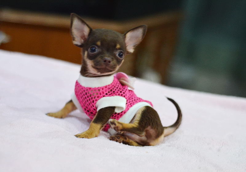★^-^*★ WWW.WOWWCHIHUAHUA.COM★^-^*★..""น้องดุ๊กดิ๊ก" เพศผู้ขนสั้นสีชอคแทน หัวกลมน่ารัก มาร์กสวย