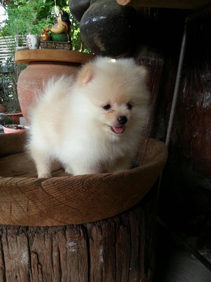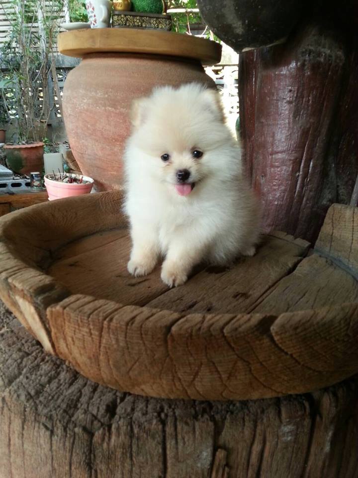 ปอมเพศเมีย สีขาวครีม ฟอร์มเลี้ยงเล่นไซต์มาตราฐาน[มีรูปพ่อแม่] เกิด 23 มีนาคม 2559 แข็งแรงทานอาหารเองได้แล้ว ฉีดวัคซีนแล้วเข็มแรก พร้อมย้ายบ้าน ลูกค้าที่อยู่ลำปางหรือจังหวัดใกล้เคียงมาดูเด็กๆได้ที่บ้านข้างเซนทรัลลำปางทางเรามีบริการจัดส่งและส่งทางเครื่องบิน