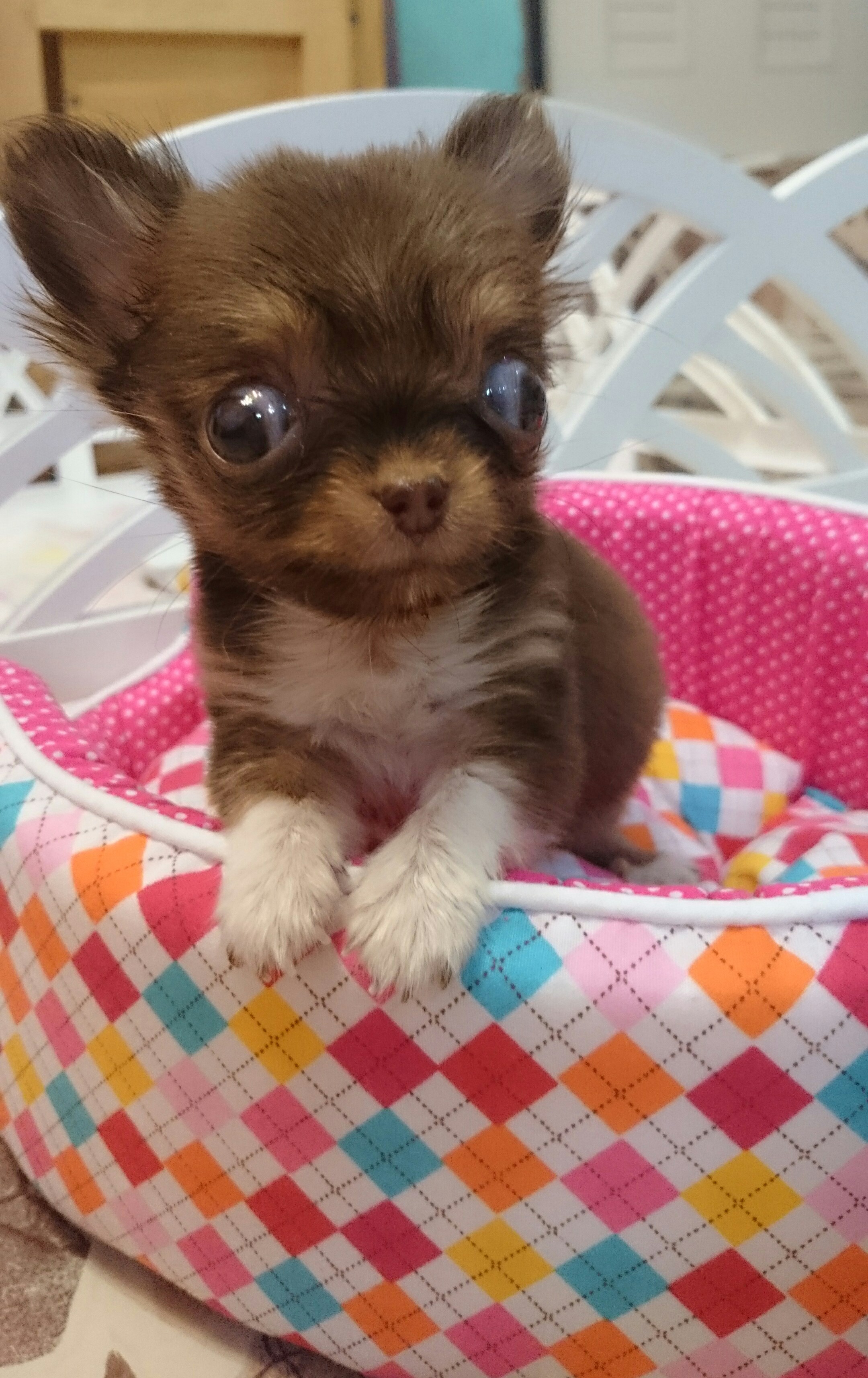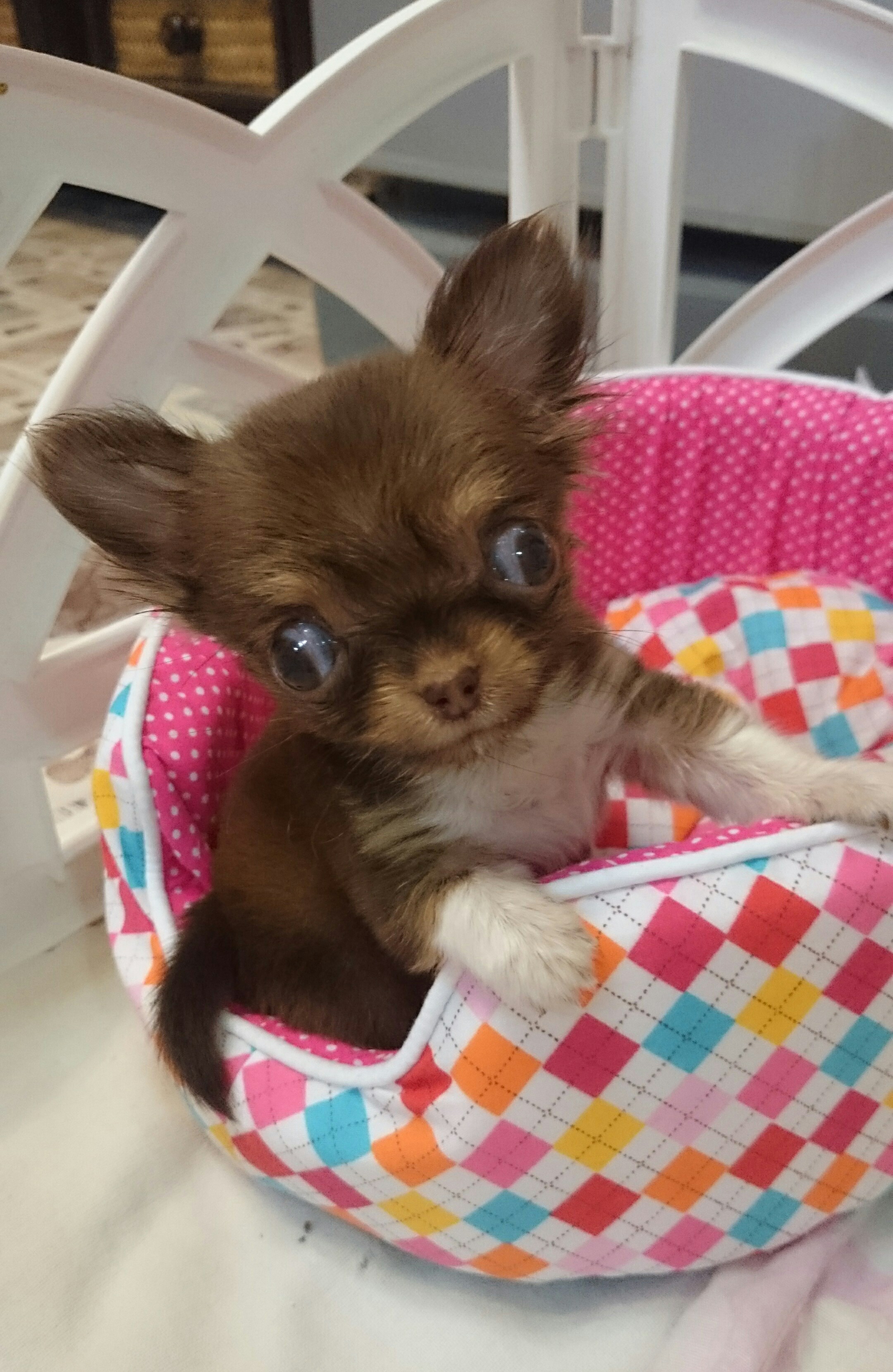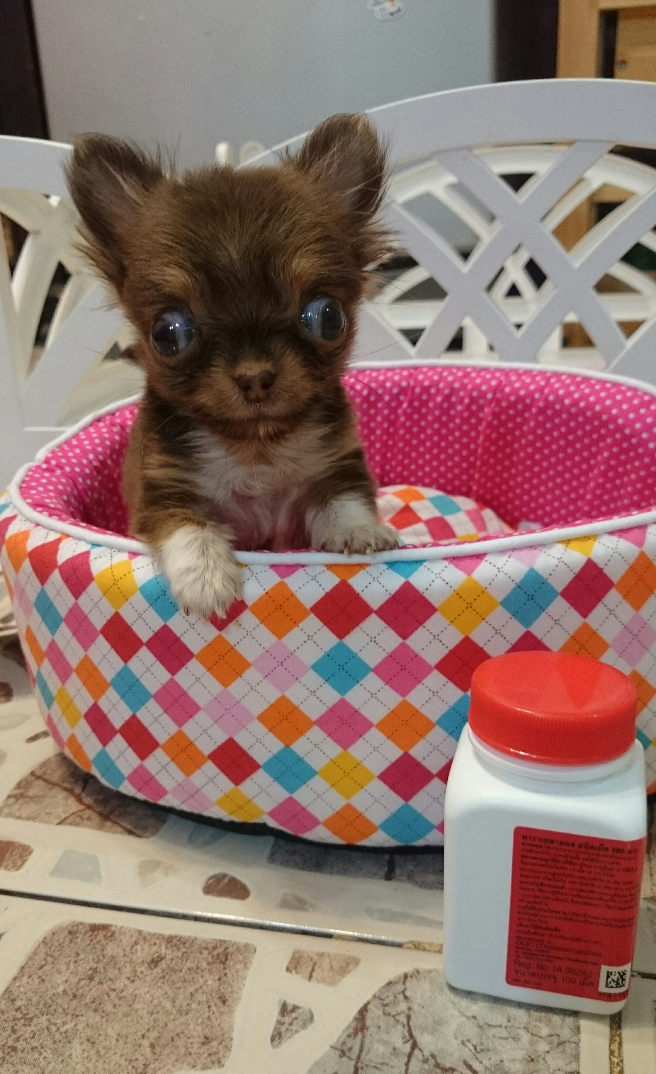 น้อง บูตะ ชิวาวา ขนยาว สีช็อคส้ม ไซร์ ทีคับ เล็กจิ๋ว เพศชาย