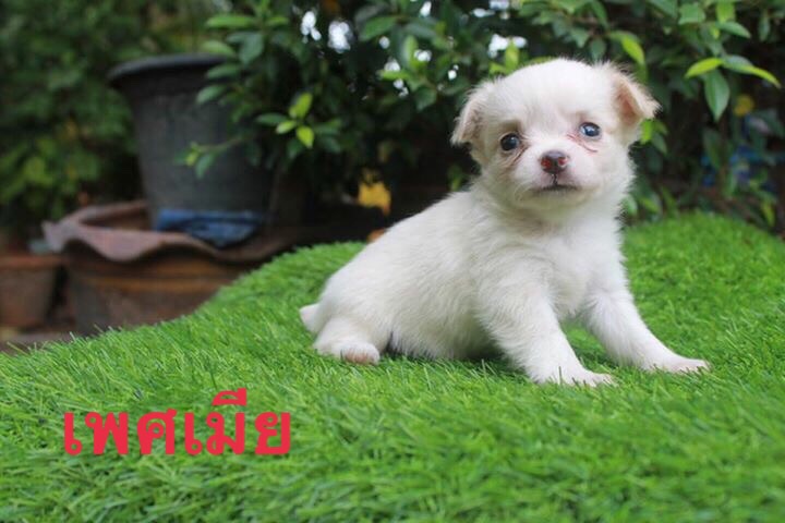ขาย ชิวาวาขนยาว เพศผู้ - เมีย สีขาว สีแฟนซี น่าสั้นหัวโต ไซค์เล็ก กินเก่ง สุขภาพแข็งแรงสมบูรณ์ อายุ 40 วัน ราคา 4900 บาท สนใจมาดูตัวจิงได้
