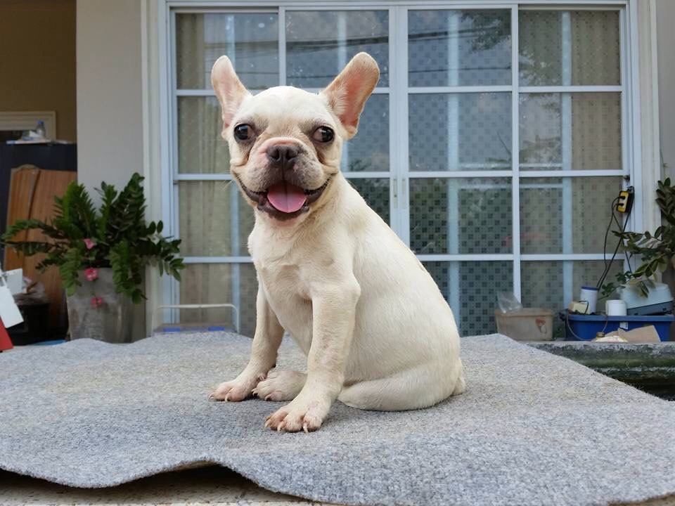 เฟรนซ์บูลด๊อกเพศผู้สีขาวอายุสามเดือนพร้อมส่งมีใบเพ็ดสมาคมเต็มใบ