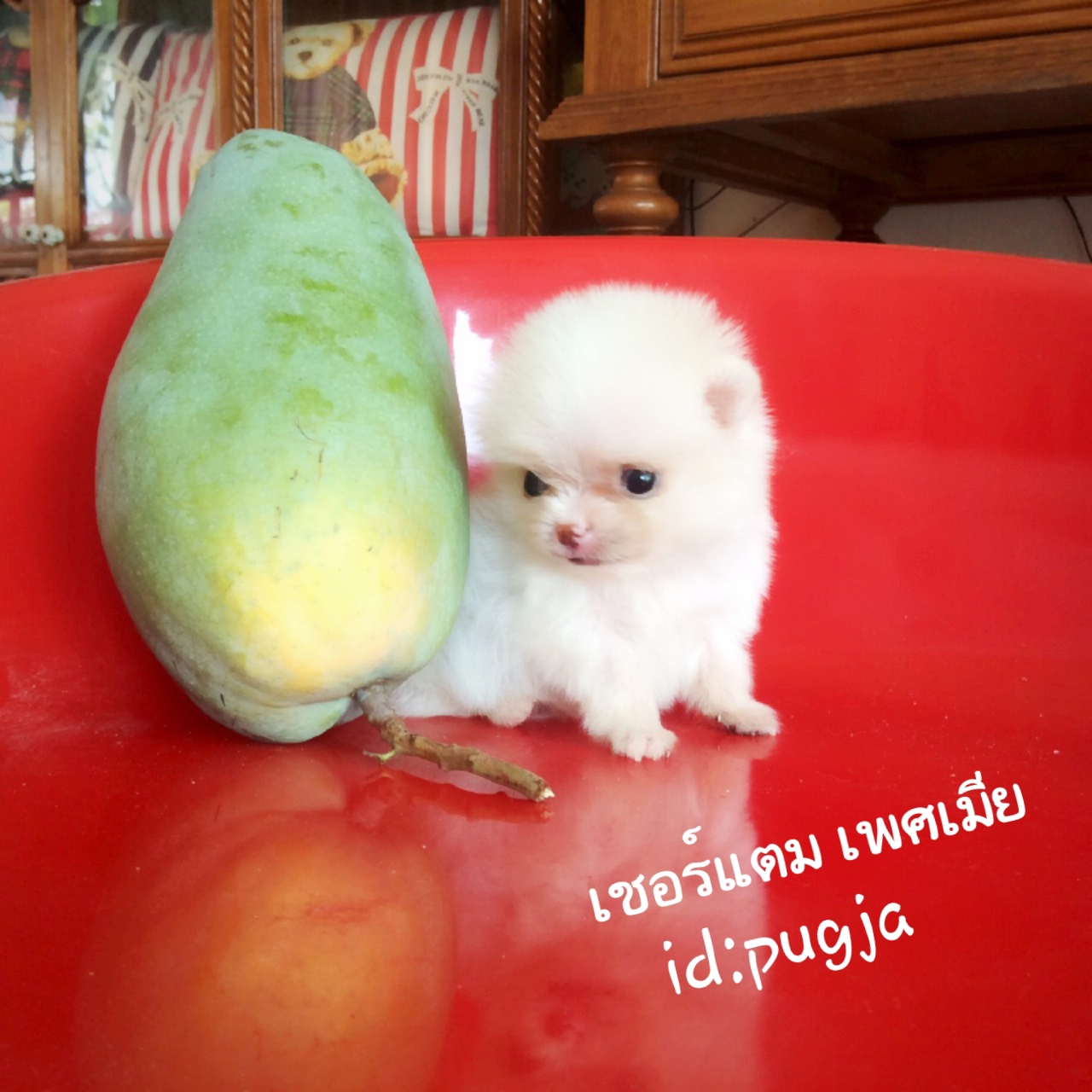 สีขาวครีมมีใบเพ็ดดีกรีรับรองจากสมาคม รับประกันโตเต็มที่นน.ราว 1.3 สุดๆ ไม่เกิน1.5 กก. สนใจทักไลน์ pugja หรือทักข้อความ ดูประวัติการขาย ที่แฟนเพจ ตามลิ้งค์