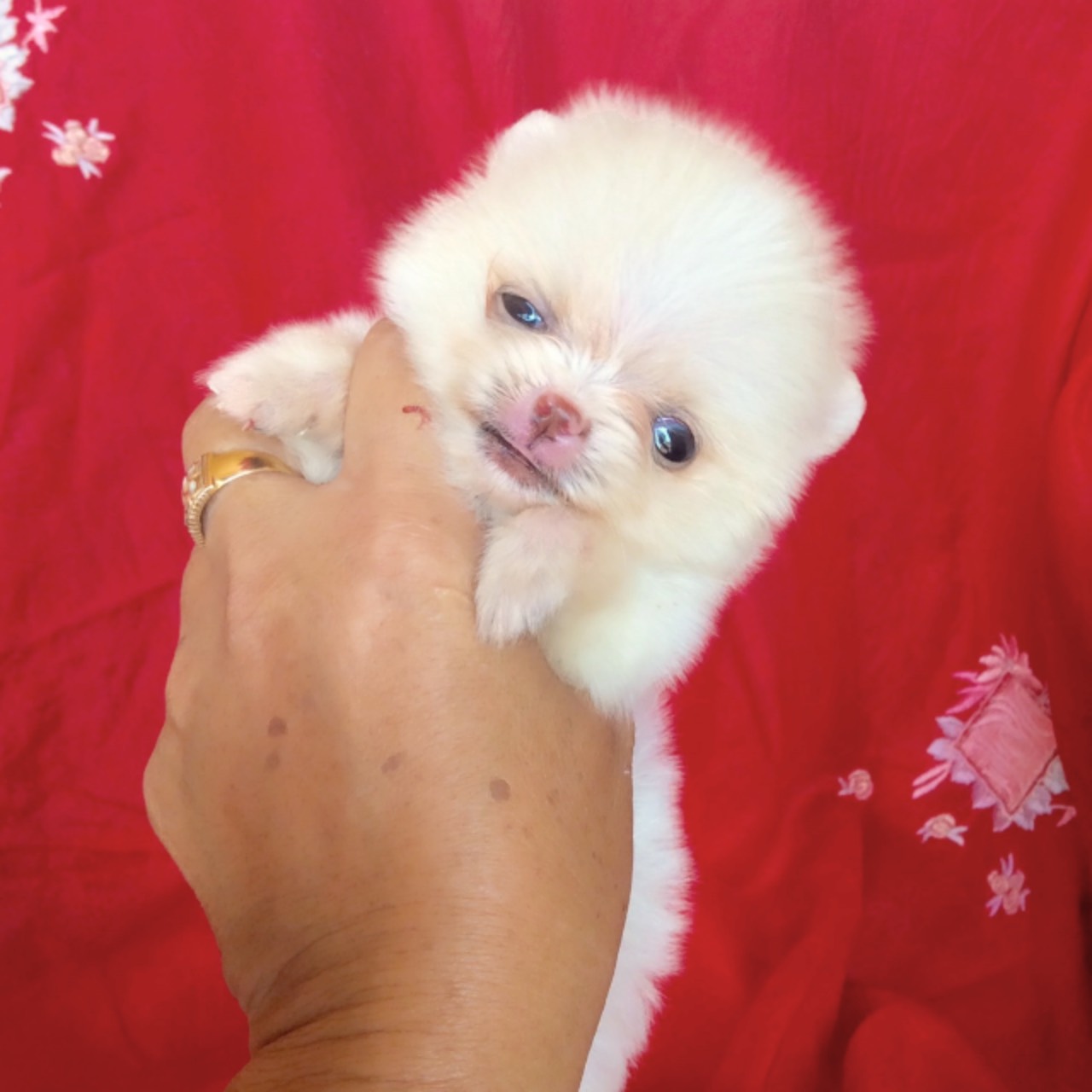 ปอมเมอเรเนี่ยนสีขาวครีม เพศเมีย ไซส์มินิทีคัพเล็กพิเศษ