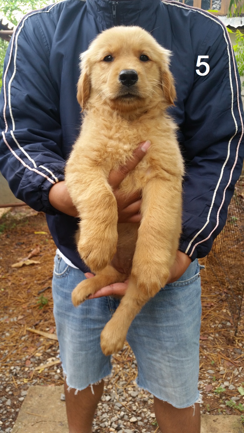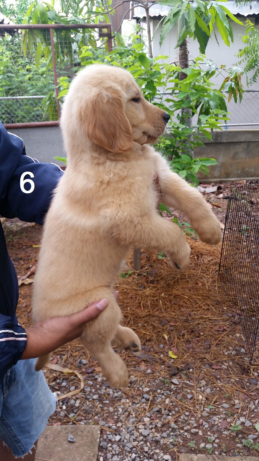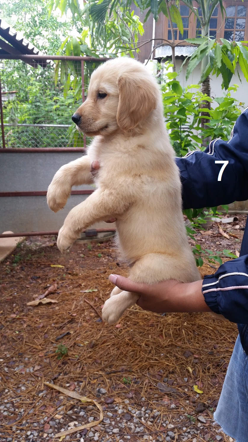โกลเด้นท์พร้อมย้ายบ้านครับ คอกนี้มี 7 ตัว ตัวผู้ 4 ตัว ตัวเมีย 3 ตัว เกิด 30 มีนาคม 2559 ฉีดวัคซีนเข็มแรกแล้ว ส่งฟรีถึงมือเช่นเคยครับ (ฟรีถึง กทม. แถวๆ ม.เกษตรศาสตร์บางเขน) ค่าตัว 5,000-5,500 บาทครับ